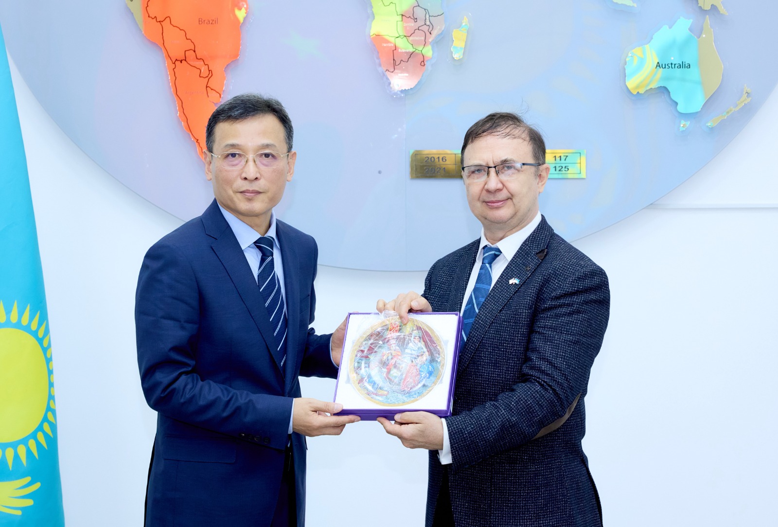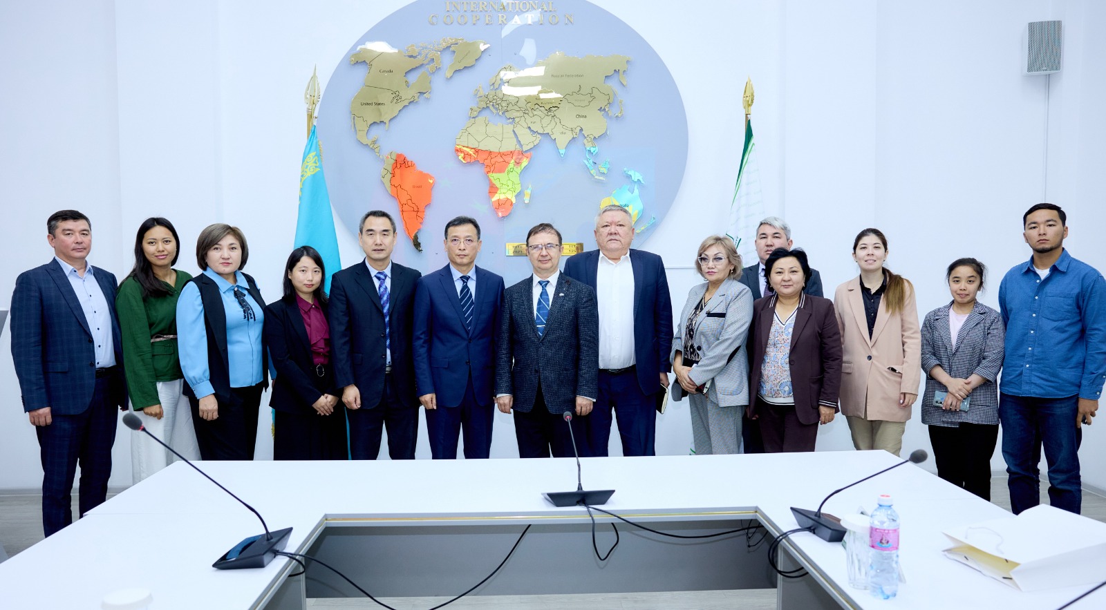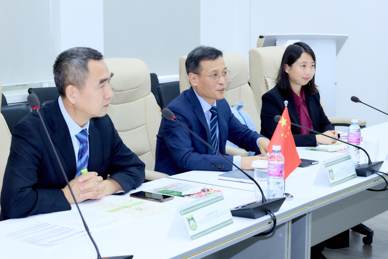 The meeting was opened with a welcome speech by the Vice-Rector for International Relations, R. Abazov. He spoke about the university's activities, shared its achievements and information about the centers and laboratories based at the university. He also spoke about the close relationship between Kazakhstan and China, noting that one of the priority areas is establishing cooperation in the field of international programs, scientific projects, student and faculty exchanges, academic experts, and creating jobs for new professions in the agricultural sector. He mentioned four key areas of cooperation: