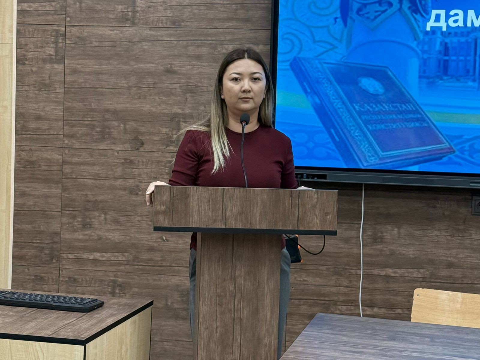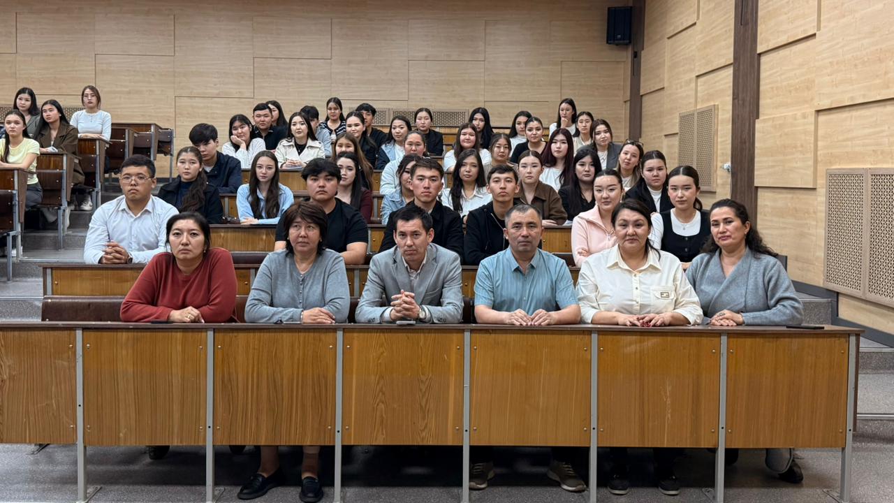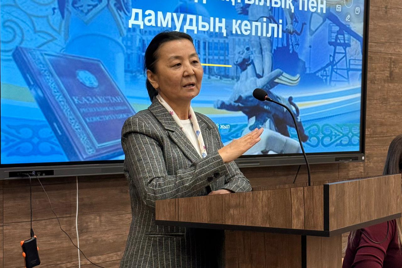 The lecture was delivered by Senior Lecturer of the Department of General Education Disciplines N.B. Tauyekelova. The event aimed to enhance students’ legal literacy and deepen their understanding of the role and significance of the Constitution in society.