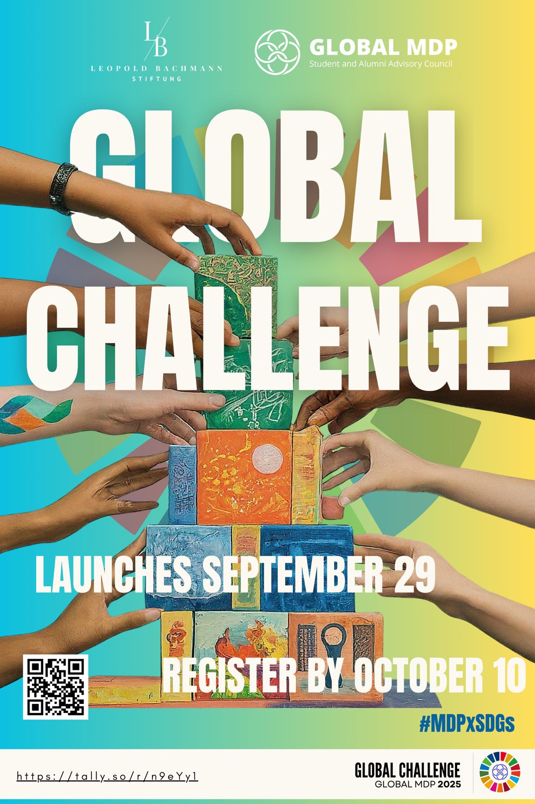 Subject: Exciting Opportunity from the Global MDP: The Global MDP Challenge 2025! Dear MDP Directors/Colleagues, I hope this message finds you well. We are thrilled to announce the launch of the Global MDP 'Global Challenge', an extraordinary opportunity for MDP students and alumni to drive impactful change on a global scale, now in partnership and financial support of the Leopold Bachmann Foundation. This is building on the very successful 2024 MDP Challenge we had last year. Challenge Overview: