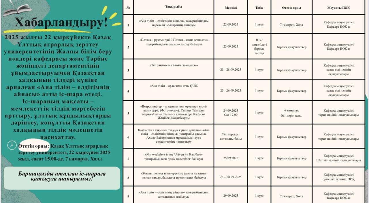 Қазақстан халқының тілдері күніне арналған жалпы университеттік апталықтың салтанатты ашылуына шақырамыз.