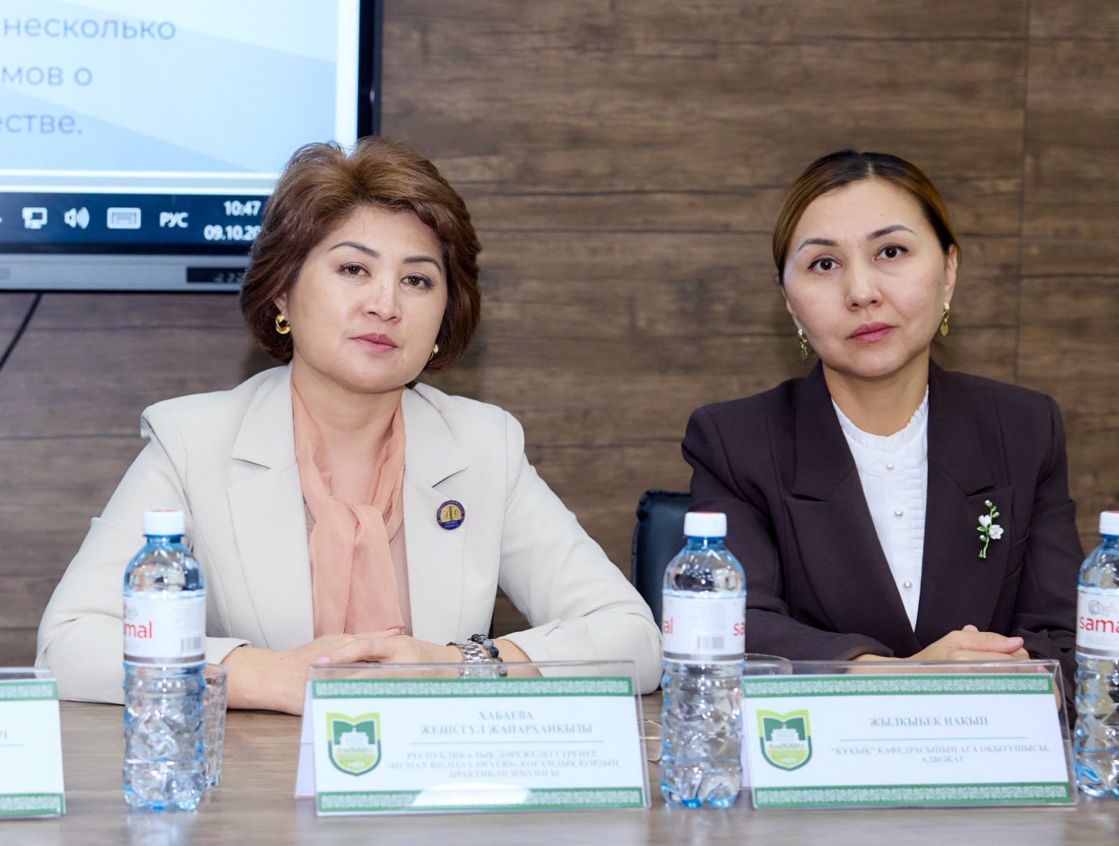 2025 жылдың 9 қазанында KazNARU-дің жоспарына сәйкес «Құқық» кафедрасының ұйымдастыруымен «Құқықтану» мамандығының студенттерімен «Human Rights Lawyers» қоғамдық қорының президенті Ракишева Ляззат Бекмуханбетовнамен, қордың практик-психологы Хабаева Жеңісгүл Жапарханқызымен, сондай-ақ Алматы қаласы адвокаттар алқасының мүшесі, адвокат Жолдасбаев Ғалымжан Сейітжановичпен бірлесіп «Қауіпсіз орта – бақытты болашақ» тақырыбында кездесу, тренинг-семинар өткізілді.