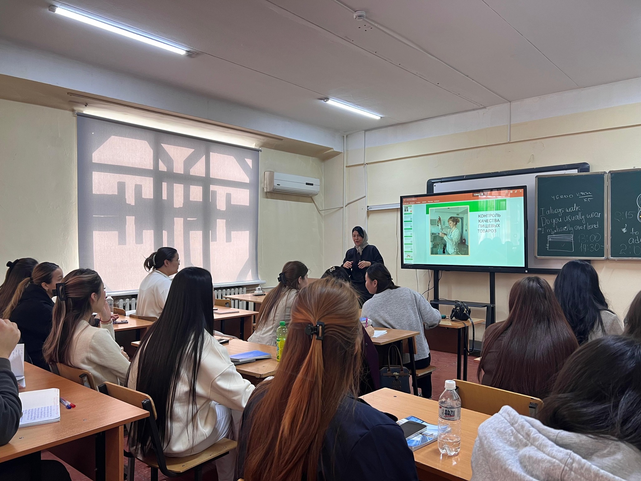 Сонымен қатар, профессор Назирова Рахманохон Мухтаровна «Тағам қауіпсіздігі» білім беру бағдарламасының 3-курс студенттеріне мазмұнды қонақ дәрістерін оқып, тағам өнімдерінің сапасы мен қауіпсіздігін қамтамасыз етудегі заманауи ғылыми тәсілдер туралы өз тәжірибесімен бөлісті.