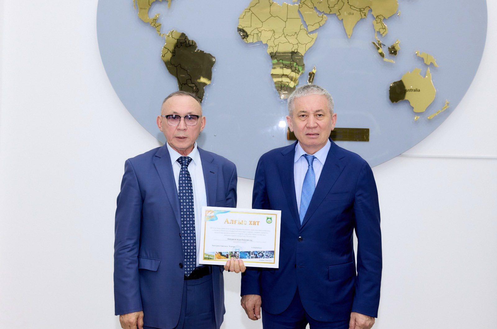 Дөңгелек үстел соңында барлық баяндамашыларға ҚазҰАЗУ Басқарма Төрағасы – Ректордың алғыс хаты табысталды. Осылайша университет аграрлық ғылымды дамытуға, инновацияларды интеграциялауға және көпжылдық ғылыми-практикалық қызметке қосқан үлестері үшін алғысын білдірді.