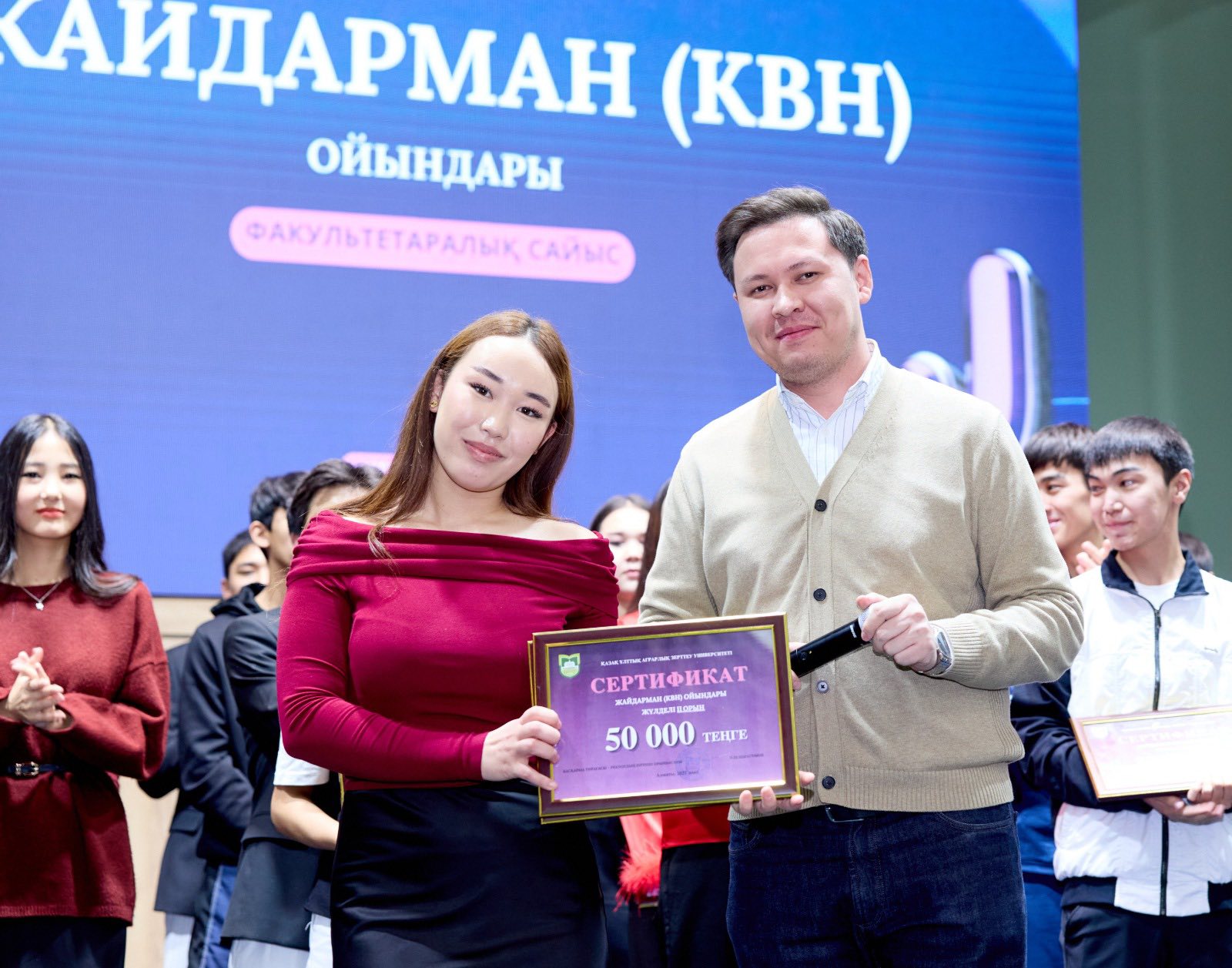 Көрермендерді шуақты көңіл-күйге бөлеген және шымыр әзілдерімен елді шымшылаған жайдарманшылар арасында «Бизнес және құқық» жоғары мектебі - «ИП ДИНАРА» құрамасы жүлделі 1-ші орынға ие болды.