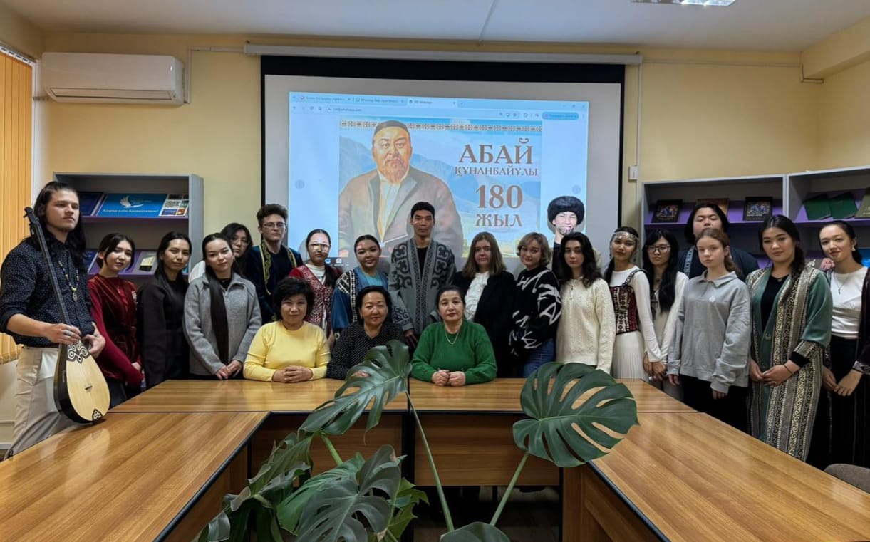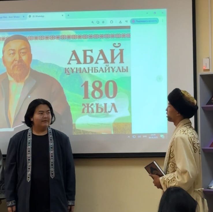 Қазақ ұлттық аграрлық зерттеу университетінің Ғылыми кітапханасында «Жалпы білім беру пәндері» кафедрасының аға оқытушысы Ахантаева Гүлазия Жағыпбарқызы «Ветеринария және Зооинженерия» факультетінің 1курс орыс тобының студенттерімен Ұлы ақын, композитор, философ, саясаткер, ағартушы, жазба әдебиетінің негізін қалаушы, ұлт мақтанышы Абай Құнанбайұлының 180 жылдық мерейтойына арналған іс-шара ұйымдастырды.