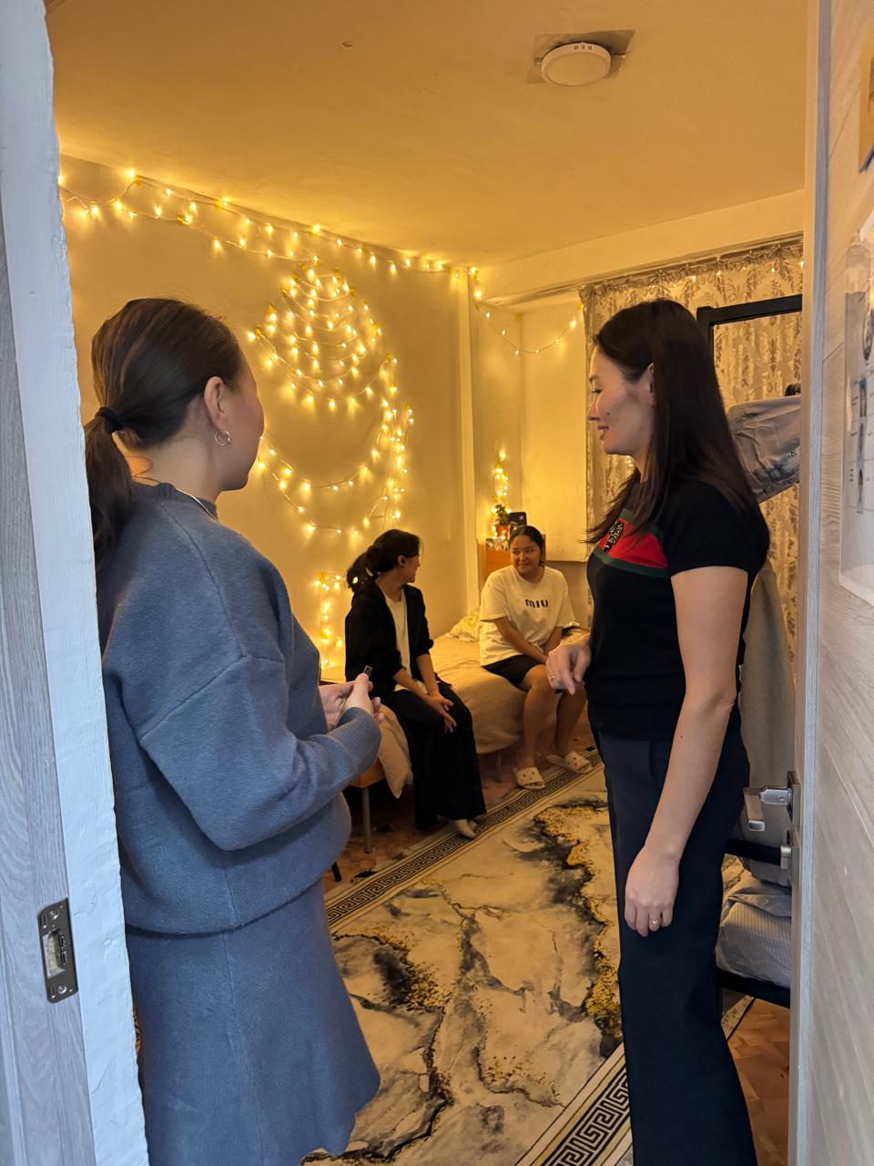 Аралау барысында студенттермен әңгімелесу ұйымдастырылып, олардың тұрмыс-тіршілік жағдайына, интернет жылдамдығына, санитарлық аймақтардың тазалығына қатысты ұсыныстары тыңдалды.