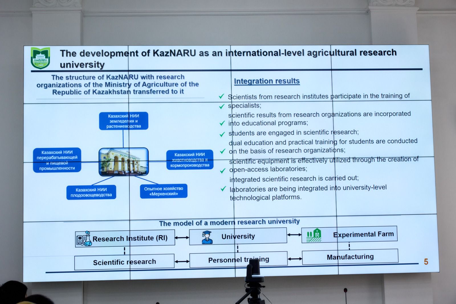 Кездесуді KazNARU Басқарма Төрағасының бірінші орынбасары – Ректор, ветеринария ғылымдарының докторы, профессор Пірімқұл Шолпанқұлұлы Ибрагимов кіріспе сөзбен ашты. Ол университеттің қызметі туралы қысқаша баяндап, «Қазақстандағы құс шаруашылығының қазіргі жағдайы мен даму перспективалары» тақырыбында презентация жасады. Презентация барысында Қазақстанның көршілес және алыс шетел мемлекеттерімен ынтымақтастықтың негізгі бағыттары айтылды. Мал азығы өндірісі мен егіншілікпен айналысатын институттар, сондай-ақ АҚШ, ҚХР, Ресей және басқа елдермен орнатылған тығыз байланыстар атап өтілді.