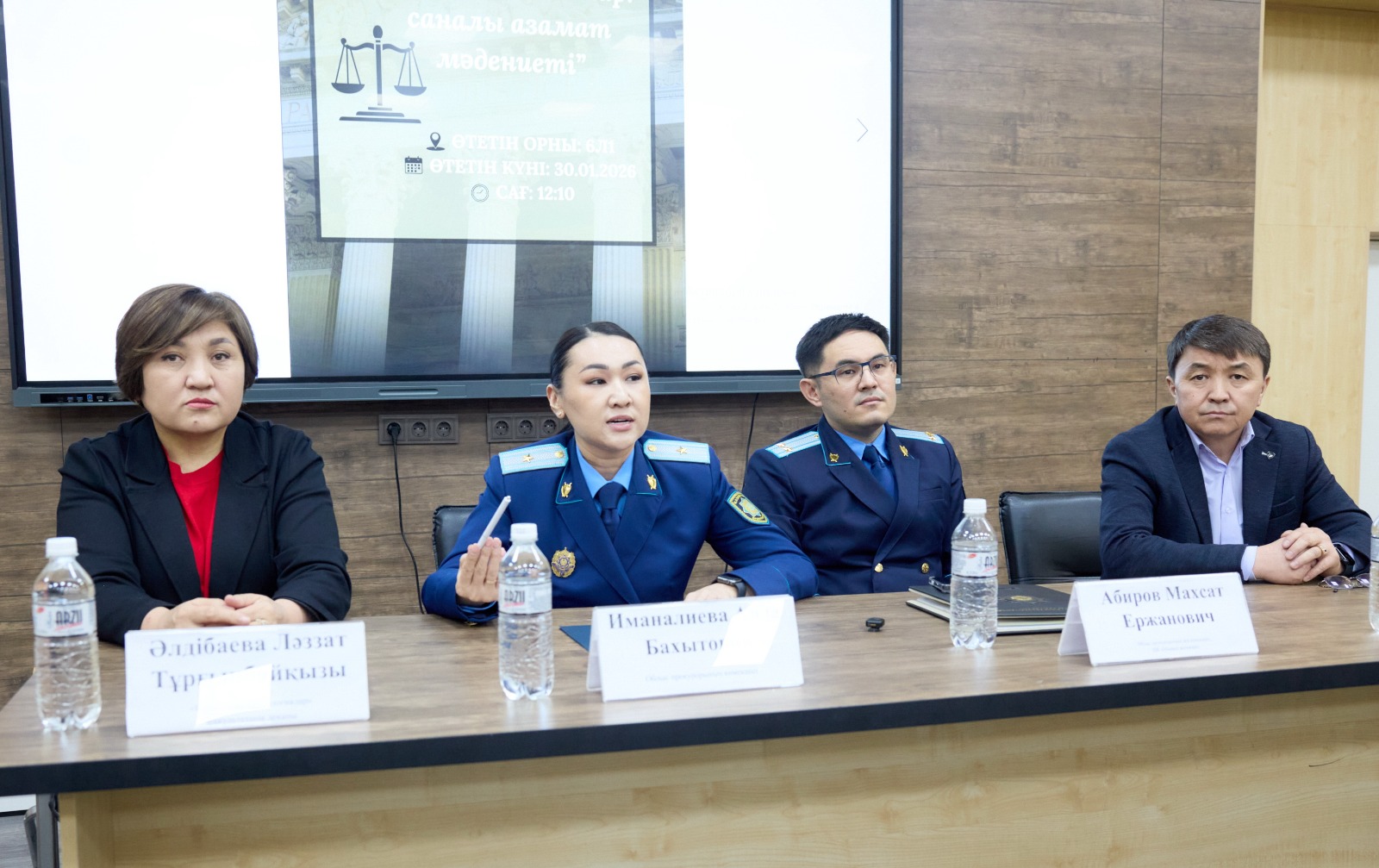 2026 жылғы 30 қаңтар күні Қазақ ұлттық аграрлық зерттеу университетінде Алматы облысы прокурорының аға көмекшісі, HR тобының жетекшісі Абиров Мақсат Ержанұлы мен облыс прокурорының көмекшісі Иманалиева Аида Бахытовнаның қатысуымен «Заң мен тәртіп» қағидатын ілгерілету жұмыстары аясындағы «Заң және жастар: саналы азамат мәдениеті» тақырыбындағы ақпараттық кездесу ұйымдастырылды. Дәріс жастардың цифрлық және қаржылық қауіпсіздік саласындағы құқық бұзушылықтардан қорғану мәдениетін қалыптастыруға бағытталды.