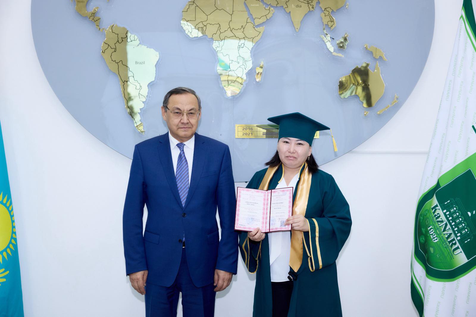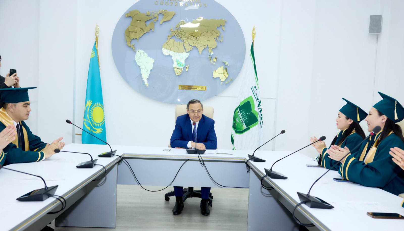Қазақ ұлттық аграрлық зерттеу университетінің Басқарма Төрағасы – Ректоры Күрішбаев Ақылбек Қажығұлұлы ЖОО-ның диссертациялық кеңестерінде өз жұмыстарын сәтті қорғаған бір топ жас ғалымдарға «Жоғары оқу орнының белгіленген үлгідегі философия докторы (PhD)» дәрежесі иегерлерін марапаттау рәсімін өткізді.