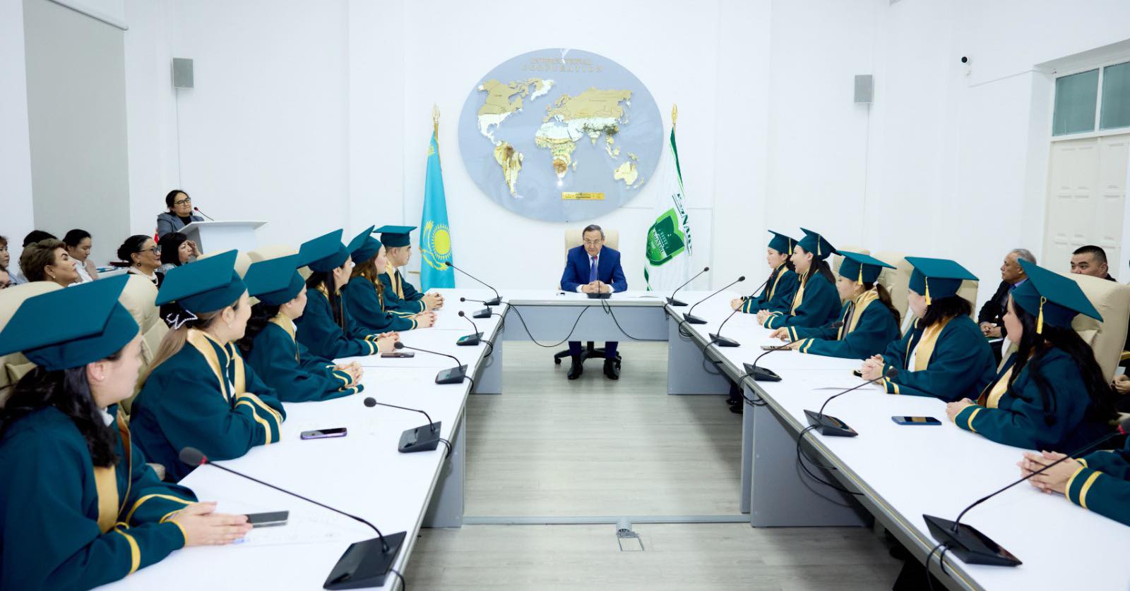Университет өміріндегі аса маңызды, салтанатты іс-шараға университет басшылығы, кафедра меңгерушілері, ғылыми кеңесшілер мен жас ғалымдар, ата-аналар қатысты.