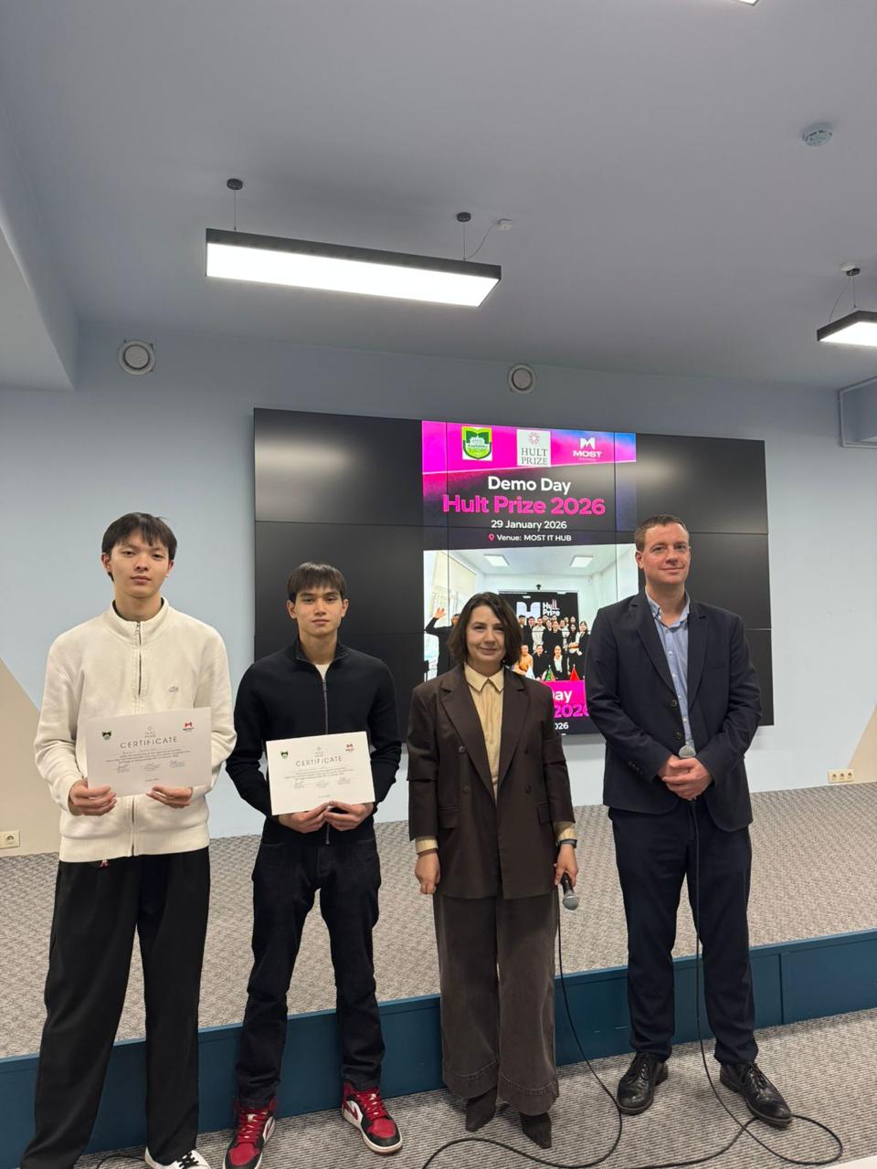 Hult Prize Demo Day 2026 аясында ҚазҰАЗУ мен MOST IT Hub бірлесе ұйымдастырған жастар арасындағы стартап жобалардың аймақтық питчингі Алматы қаласында өтті. Аталған байқауға еліміздің әртүрлі жоғары оқу орындарының студенттері мен білім беру ұйымдарының оқушылары қатысты.