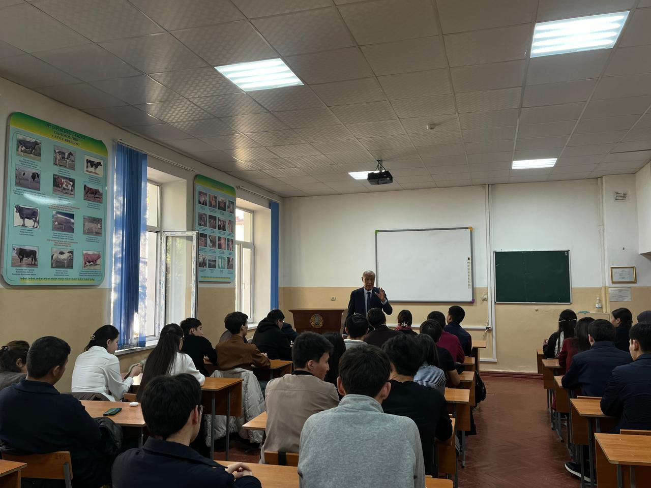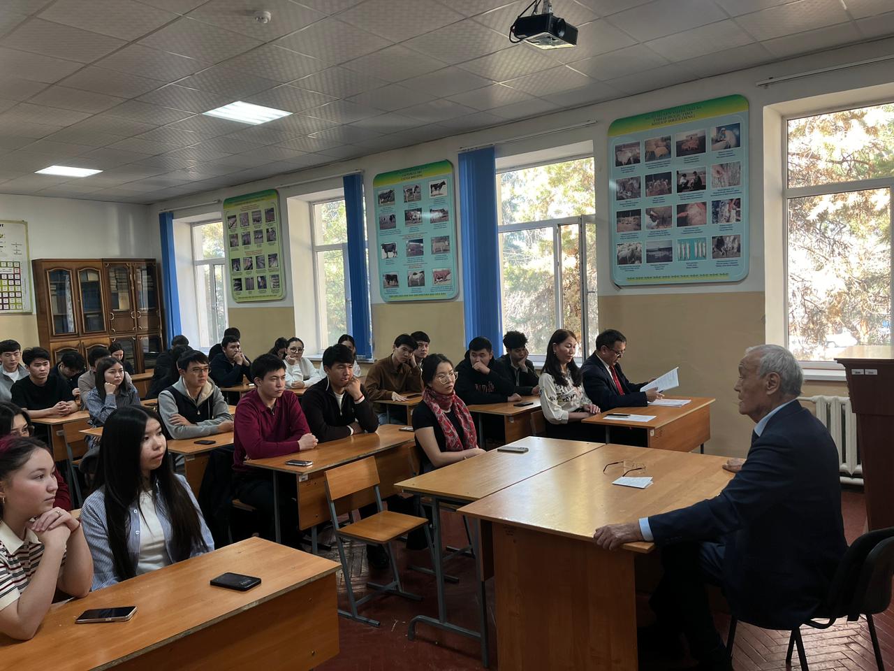 Кездесу барысында академик өзінің өмір жолы мен ғылымдағы қалыптасу кезеңдеріне кеңінен тоқталып, ғылыми мектеп қалыптастыру тәжірибесі және қол жеткізген жетістіктері жөнінде мазмұнды ақпарат берді. Сонымен қатар, зоотехния ғылымындағы өзекті зерттеу бағыттарын, мал шаруашылығындағы инновациялық ізденістерін және сала дамуына қосқан үлесін баяндап, кәсіби тәжірибесімен бөлісті. Ғалым өз сөзінде жас маман үшін ғылыми ойлау мәдениетінің, академиялық адалдықтың және үздіксіз ізденістің маңызын ерекше атап өтті. Ол студенттерді ерте кезеңнен ғылыми үйірмелер мен зерттеу жобаларына қатысуға шақырып, ғылым мен өндіріс сабақтастығының маңыздылығына тоқталды. Кездесу соңында студенттер академикке өздерін қызықтырған сұрақтарын қойып, мазмұнды пікір алмасу өтті. Іс-шара болашақ зоотехник мамандардың кәсіби қалыптасуына оң серпін берді.
