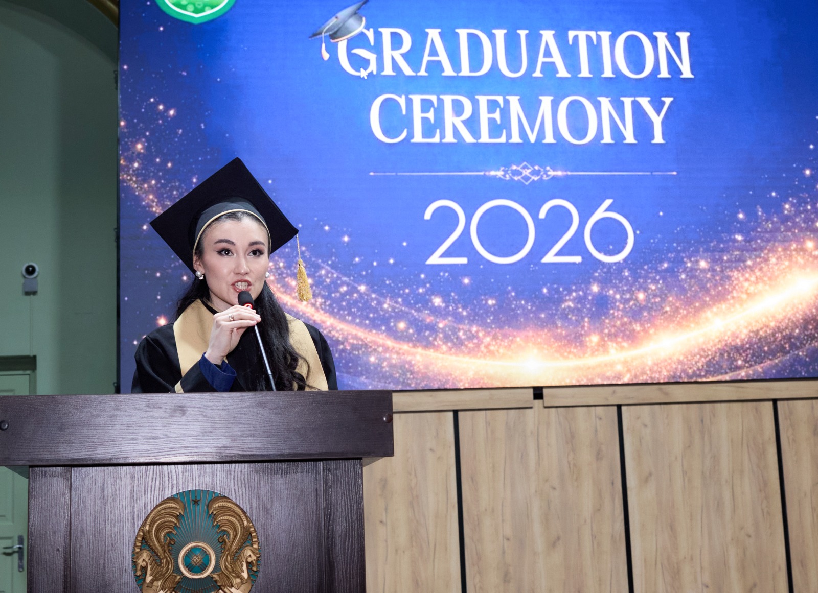 «Ветеринариялық медицина» білім беру бағдарламасының магистранты Заирова Гузеля түлектер атынан сөз сөйлеп, университет басшылығы мен профессор-оқытушылар құрамына сапалы білім мен тағылымды тәрбие бергені үшін шынайы алғысын білдірді.ілім мен ғылым жолыбнда табандылығымен ерекшеленген үздік түлек.