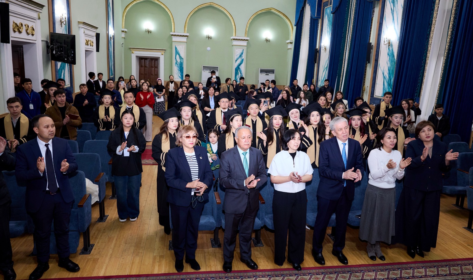 Шара соңында университет студенттері арнайы концерттік бағдарлама ұсынып, магистр атанған жастарды әсем ән мен көтеріңкі көңіл күймен құттықтады.