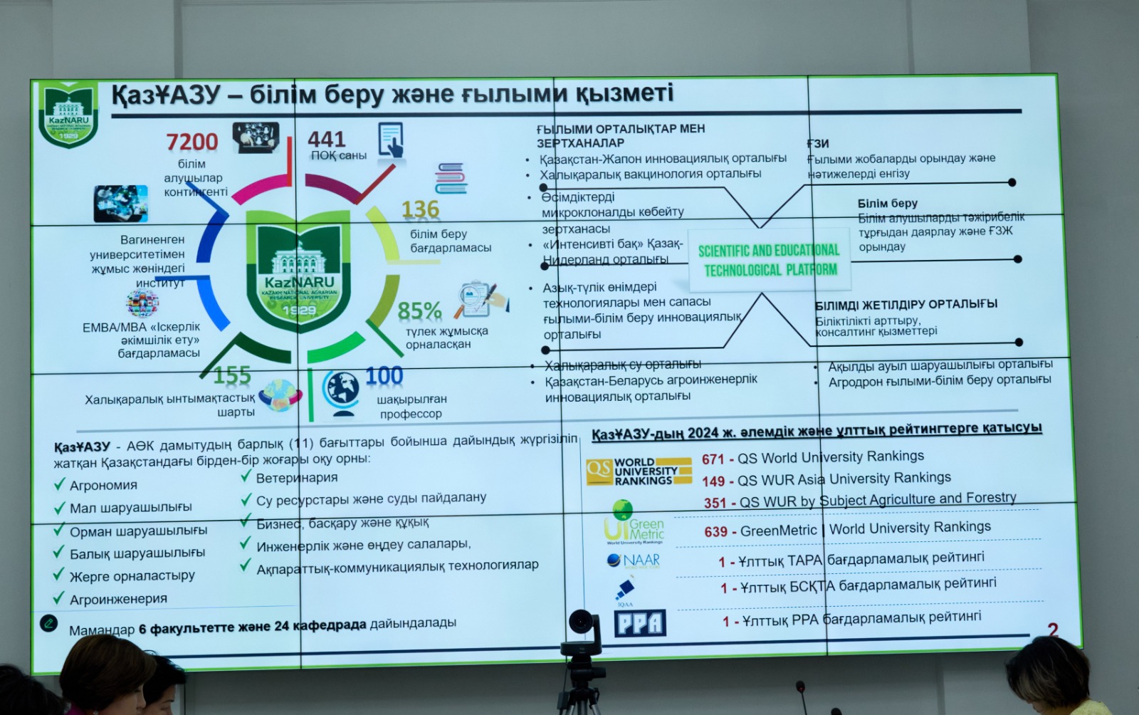 ✅Іс-шара барысында университеттің заманауи инновациялық дамудағы жетістіктері мен білім және ғылым саласындағы жаңашыл жобалары жөнінде кеңінен айтылып, KazNARU туралы презентация ұсынылды.