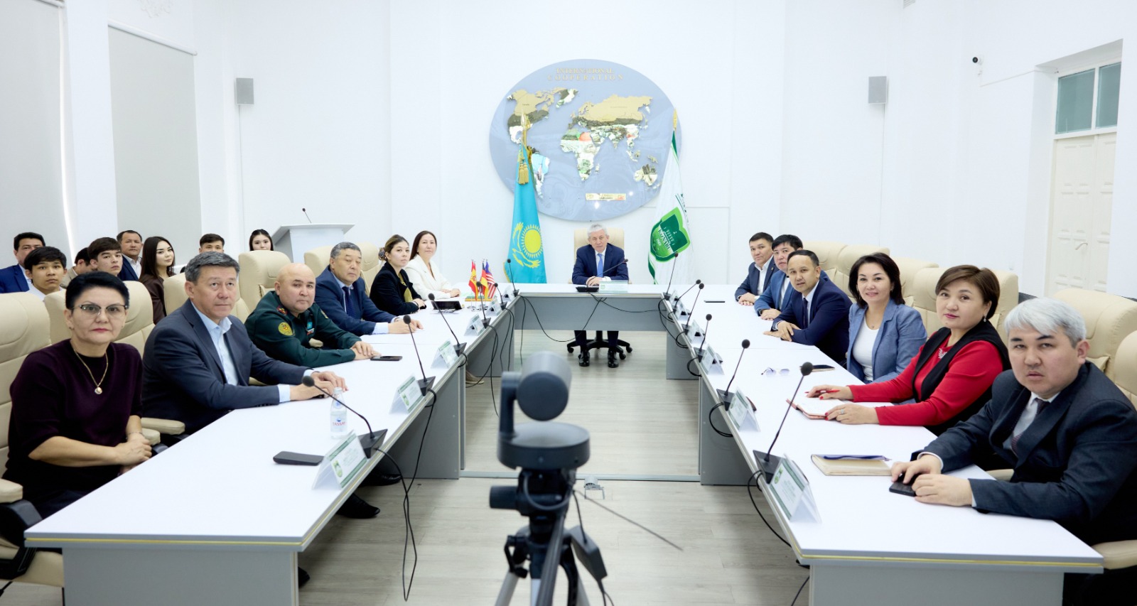 Кездесуге Қызылорда облысының 301 мектебінің 10370 мектеп бітіруші түлектері онлайн форматта қосылды. Сонымен қатар, кездесуге қалалық және аудандық білім бөлімдерінің басшылары мен мектеп директорлары, сынып жетекшілері, кәсіби бағдар беруші педагогтер, KazNARU басқарма мүшелері, факультет декандары, профессор-оқытушылар құрамы және білім алушылар қатысты..jpeg)