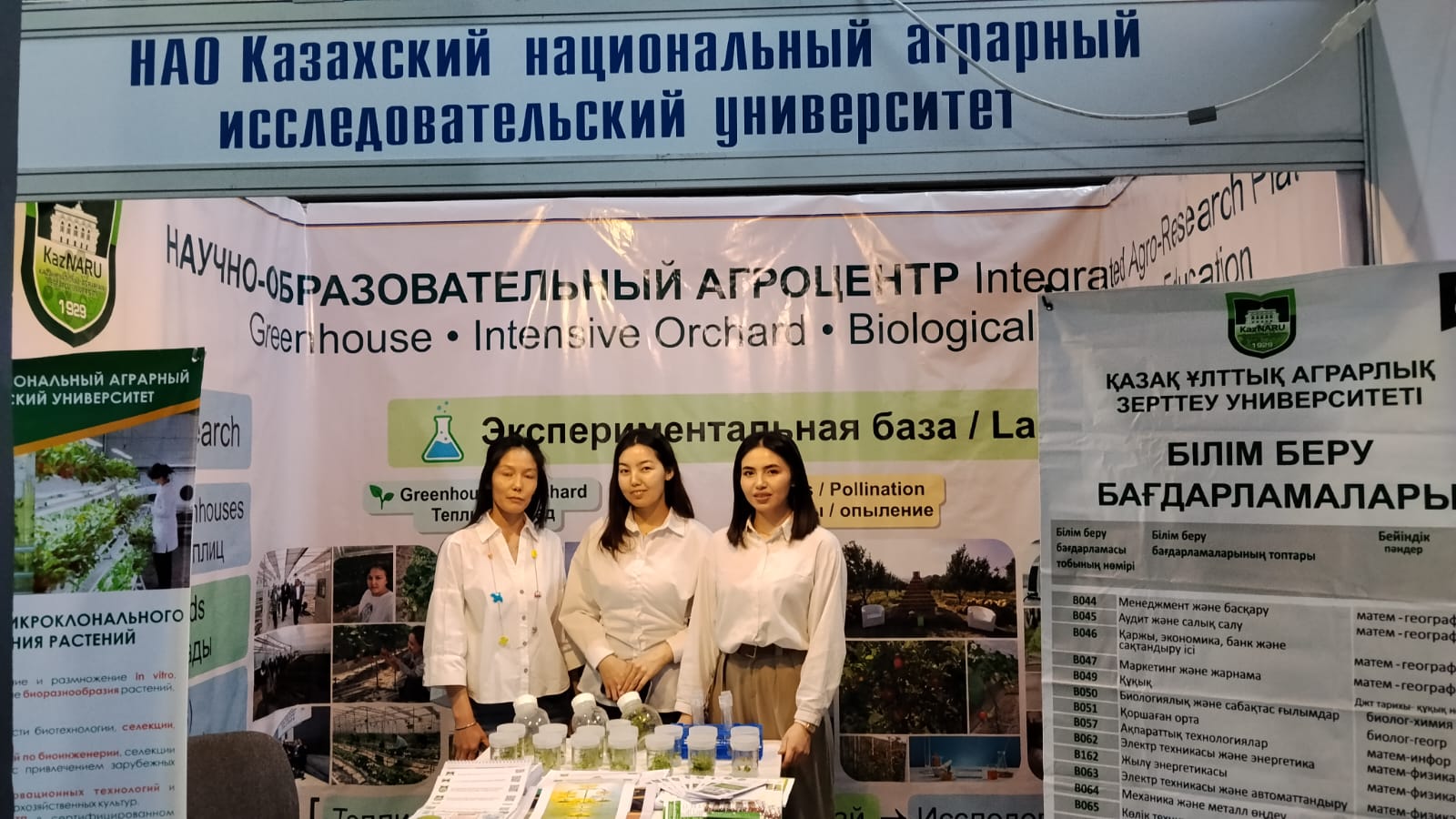 Көрме аясында университет білім беру бағдарламалары мен дуалды оқыту жүйесін таныстырып, агроөнеркәсіптік кешен үшін кадрлар даярлау бағыттары бойынша ақпарат берді, сондай-ақ Ғылыми-білім беру технологиялық платформасының, ғылыми орталықтар мен зертханалардың қызметін, өсімдіктерді микроклоналды көбейту зертханасының мүмкіндіктерін және білім алушыларға арналған тәжірибелік-оқу базасын ұсынды.