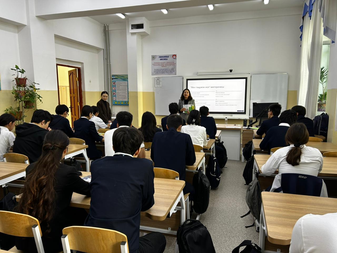 «Жалпы білім беру пәндері» кафедрасының профессор-оқытушылар құрамы С.А. Итегулова мен Е.С. Оспанов Алматы қаласындағы Ы. Алтынсарин атындағы №159 мектеп-гимназиясында 10-11 сынып оқушыларымен кездесу өткізіп, университеттің білім беру бағдарламалары туралы толық ақпарат берді. Сонымен қатар, оқушыларға үлестірмелі материалдар таратылып, сұрақтарына жауап берілді.