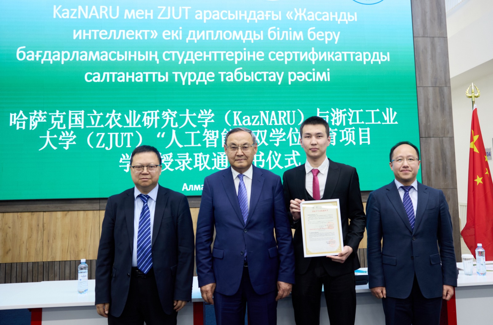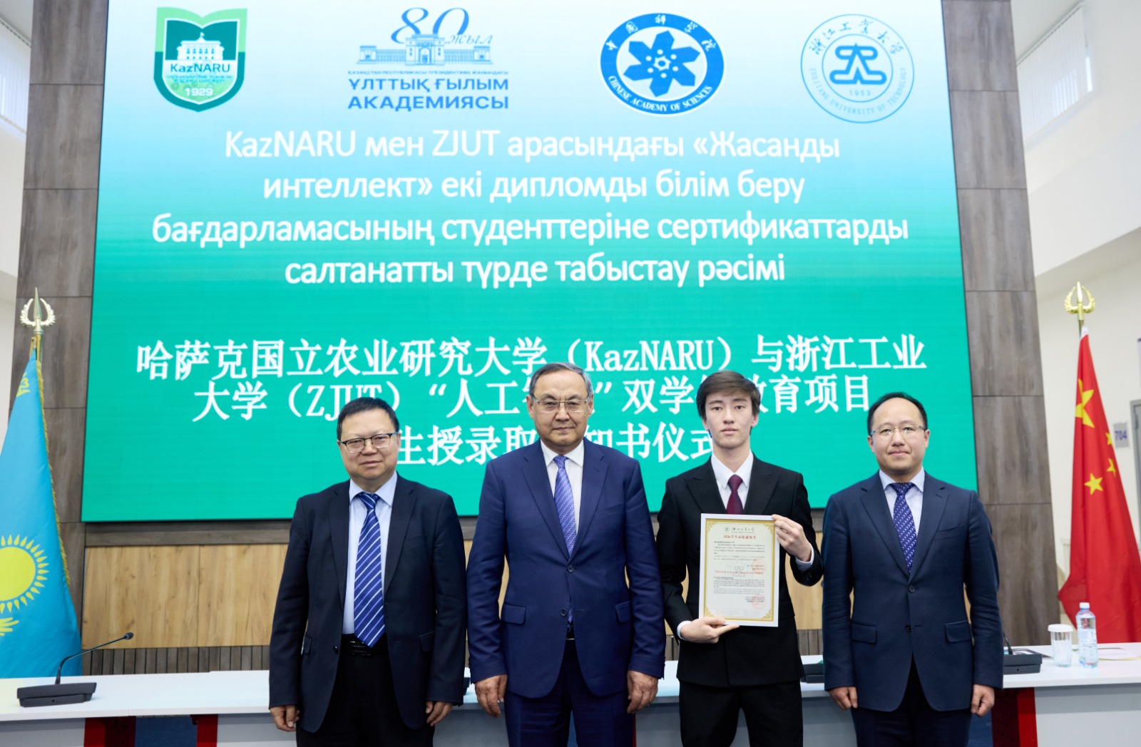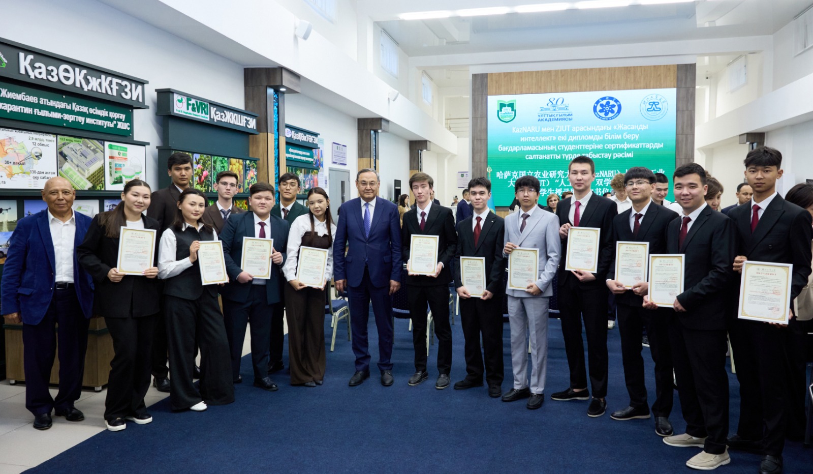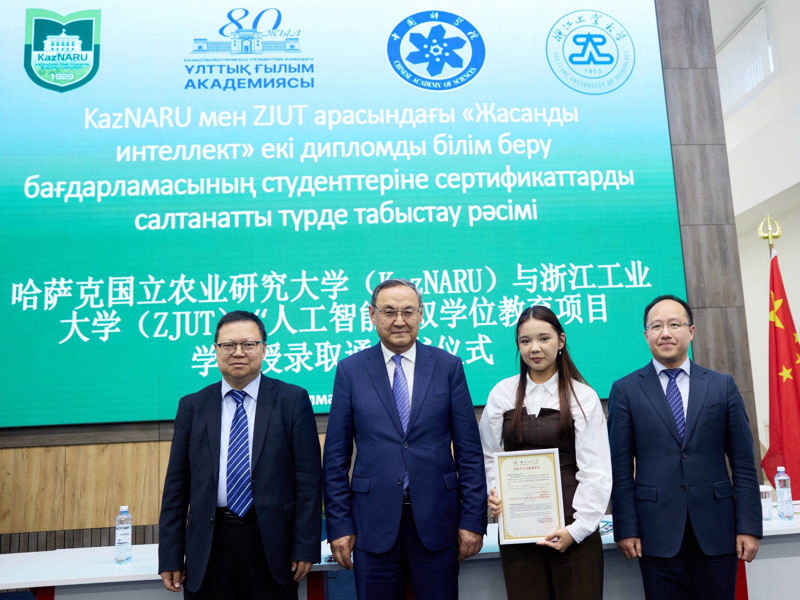 2026 жылдың 8 сәуірінде Қазақ ұлттық аграрлық зерттеу университетінде (KazNARU) Қытай Халық Республикасының Чжэцзян технологиялық университетімен (ZJTU) бірлесіп жүзеге асырылып жатқан «Жасанды интеллект» қосдипломды білім беру бағдарламасының студенттеріне сертификаттар табыстау рәсімі өтті. Іс-шара Алматы қаласындағы KazNARU-дың Су хабы залында «Болашаққа жол: AI дәуірі» атауымен ұйымдастырылды.