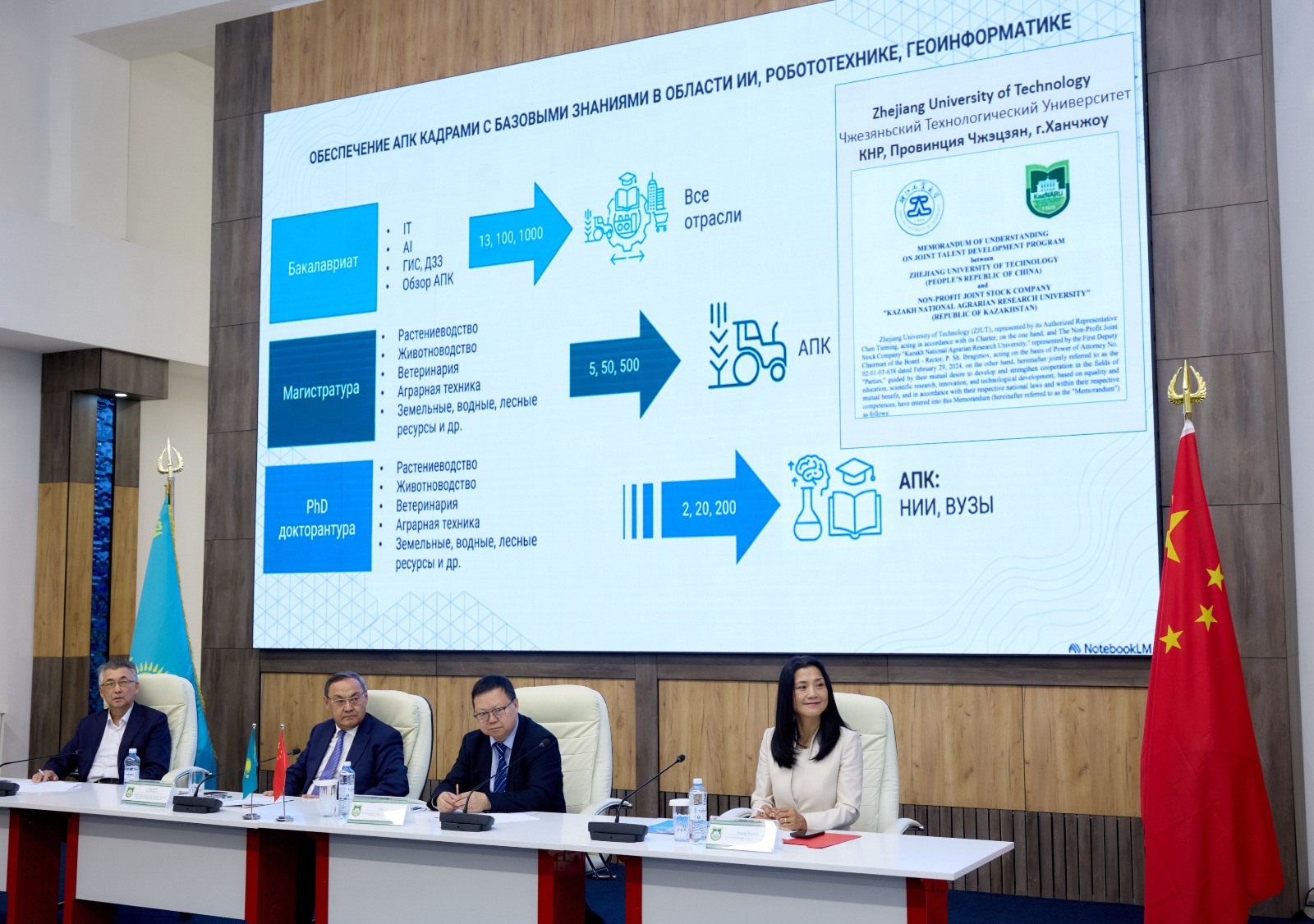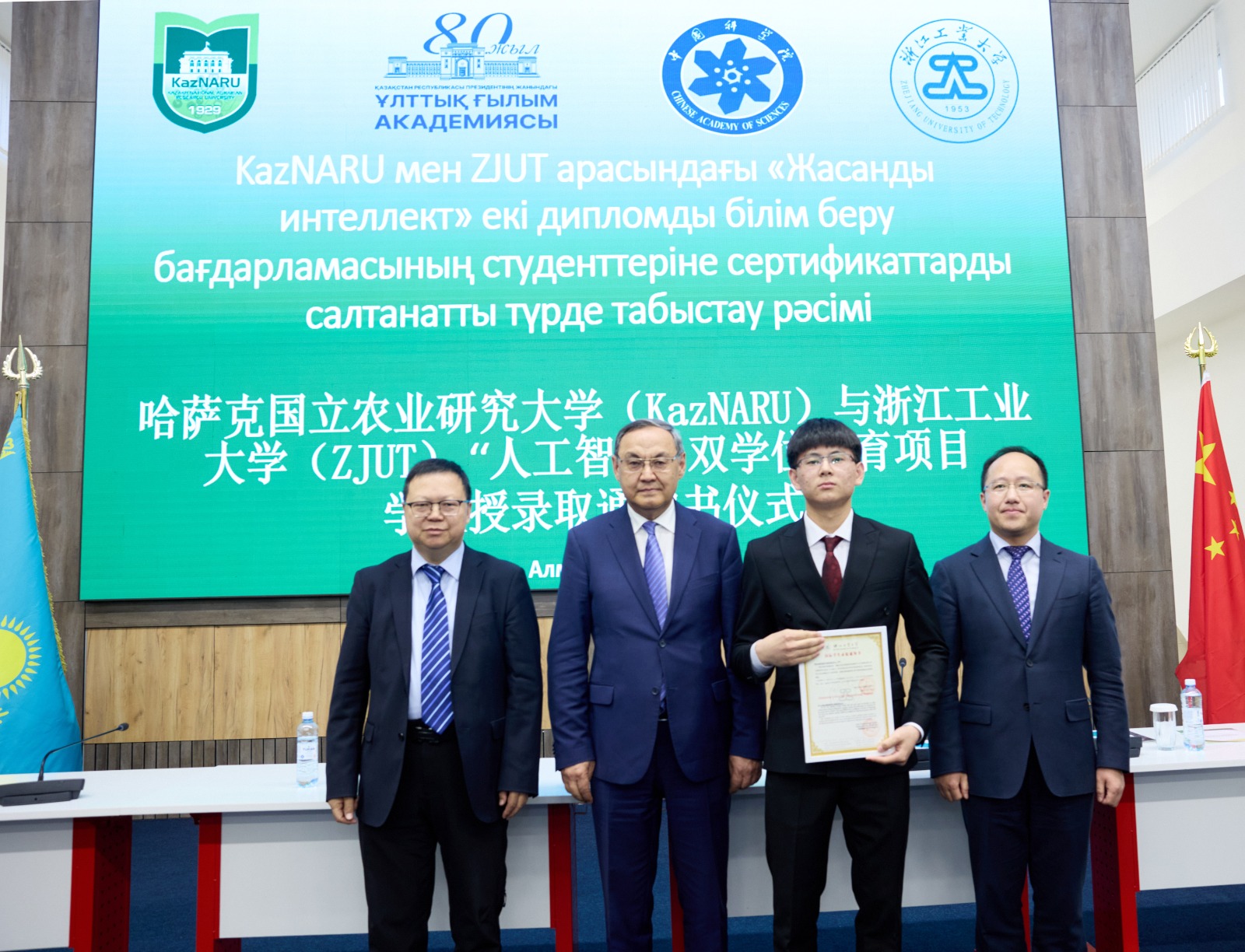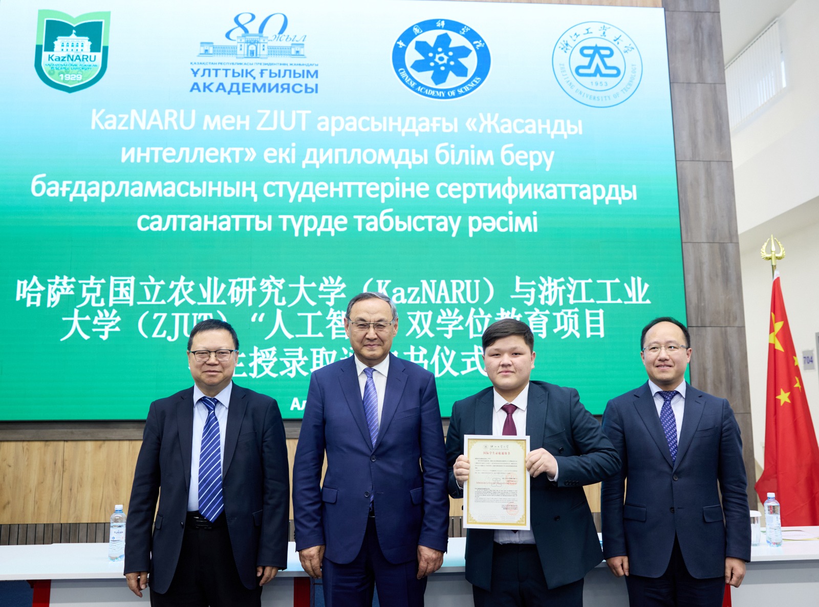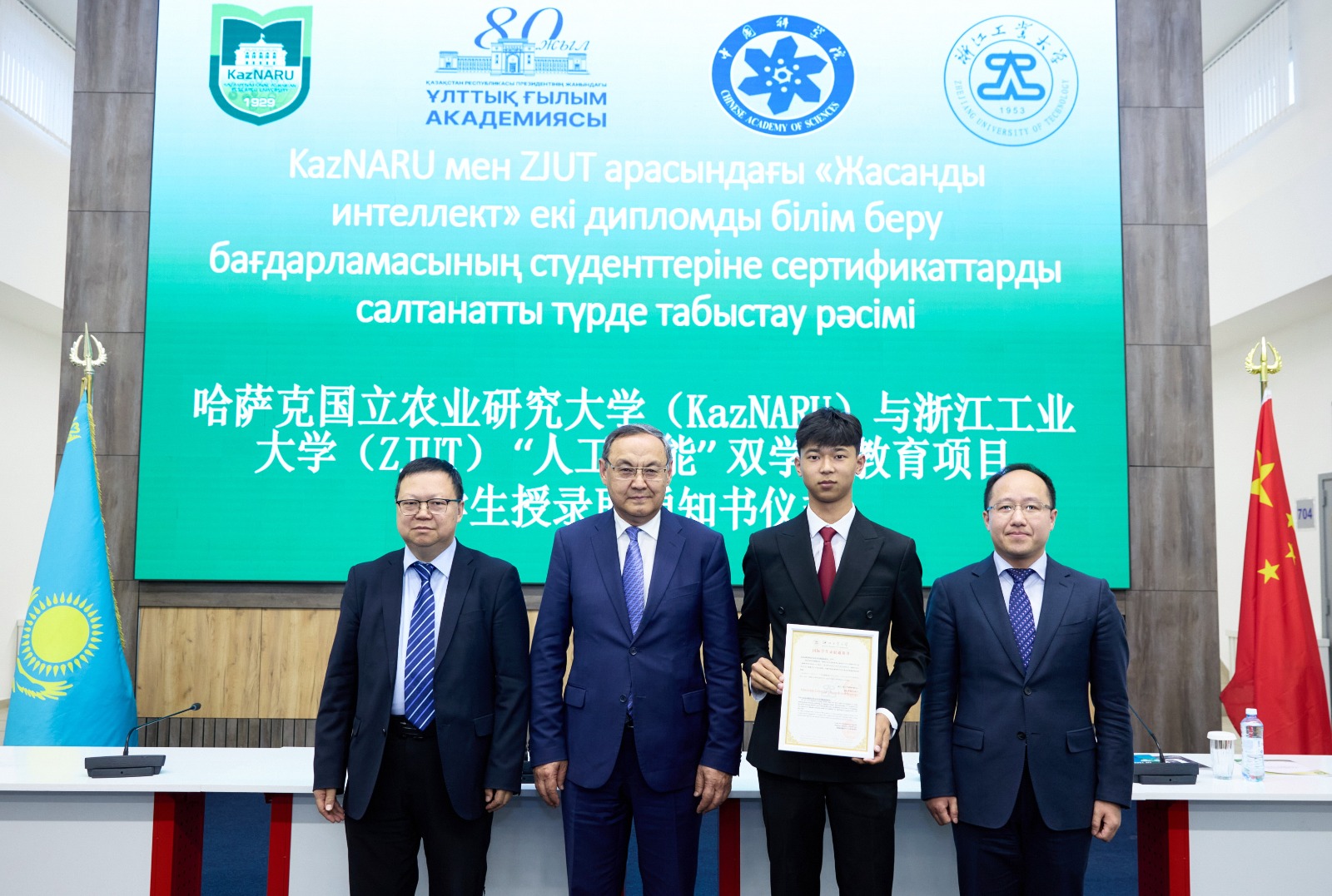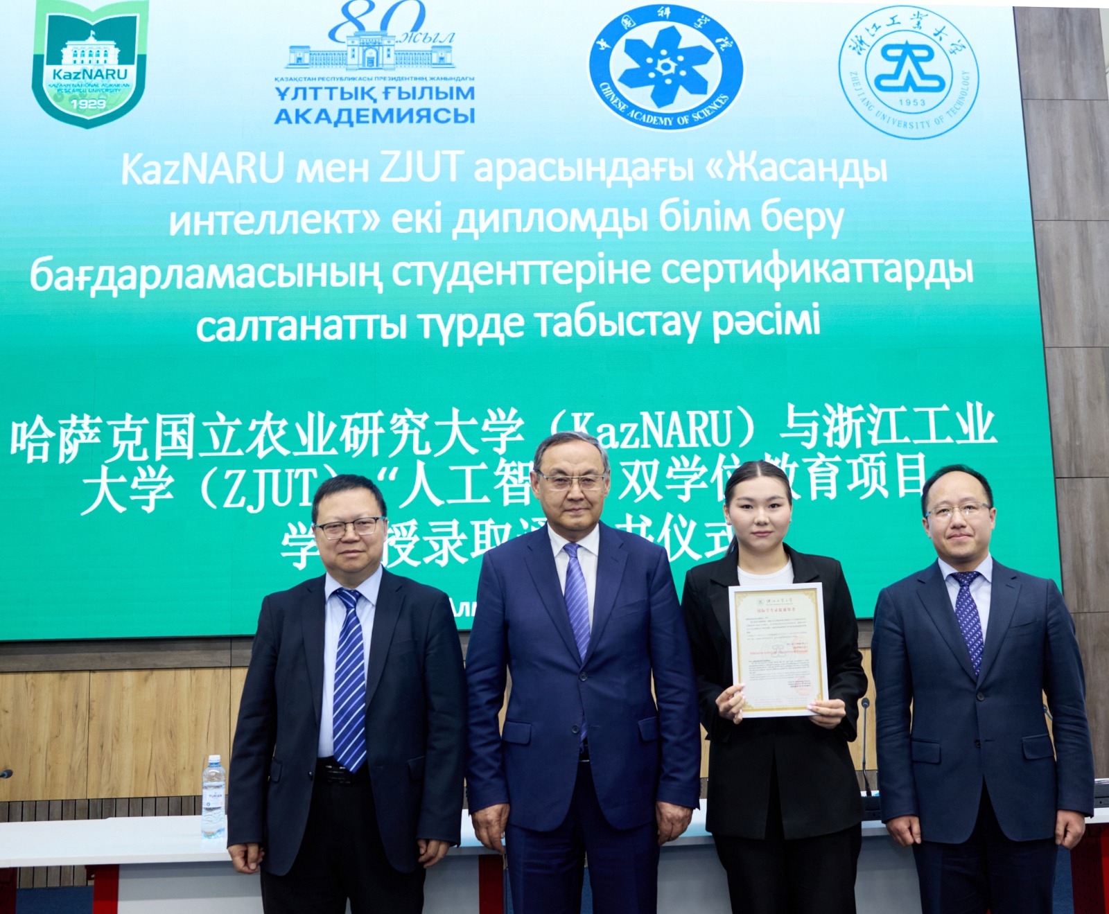 2026 жылдың 8 сәуірінде Қазақ ұлттық аграрлық зерттеу университетінде (KazNARU) Қытай Халық Республикасының Чжэцзян технологиялық университетімен (ZJTU) бірлесіп жүзеге асырылып жатқан «Жасанды интеллект» қосдипломды білім беру бағдарламасының студенттеріне сертификаттар табыстау рәсімі өтті. Іс-шара Алматы қаласындағы KazNARU-дың Су хабы залында «Болашаққа жол: AI дәуірі» атауымен ұйымдастырылды.