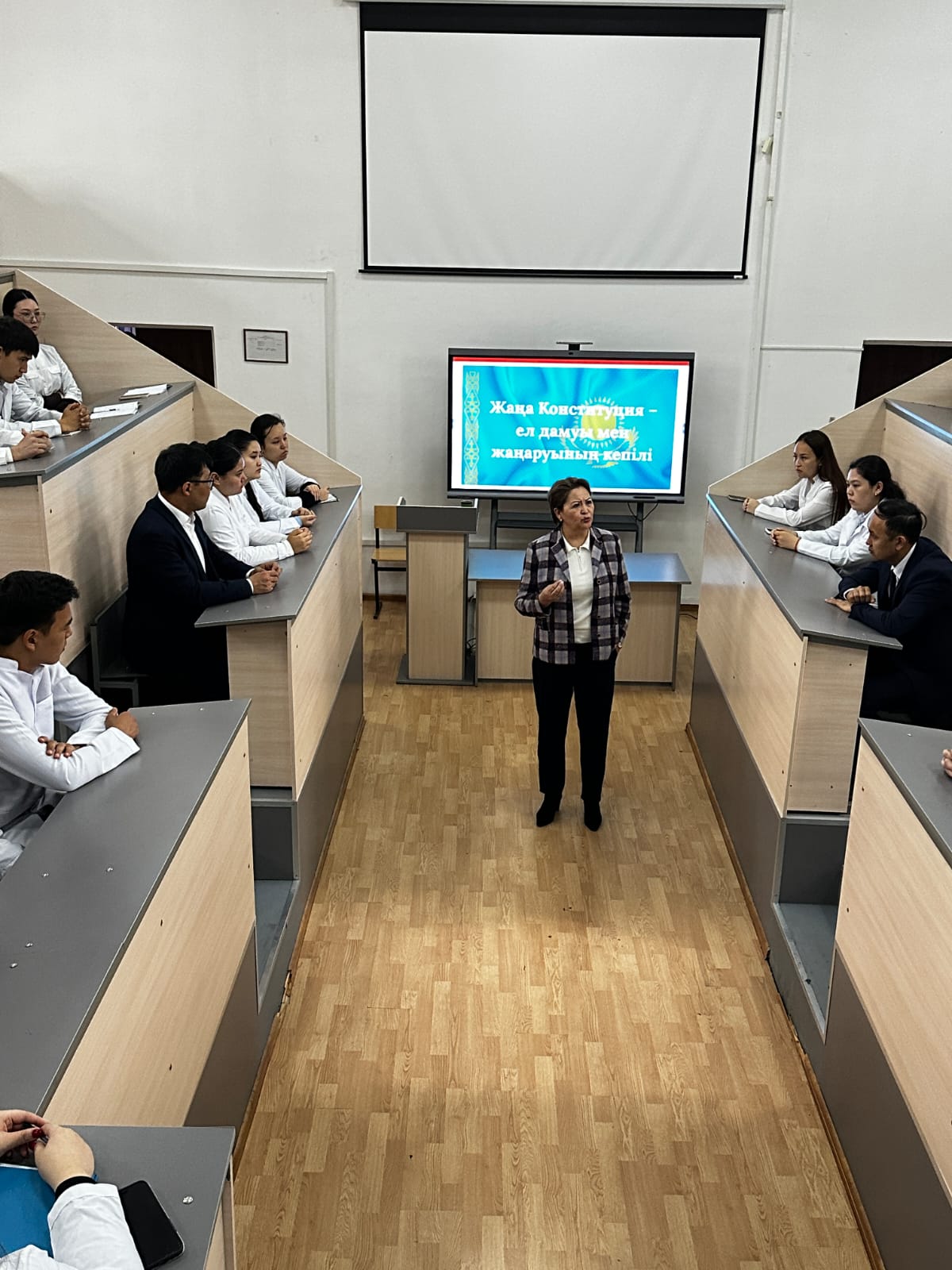 Дәріс барысында студенттер Конституцияға енгізілген өзгерістер мен толықтырулармен танысып, олардың елдің әлеуметтік-экономикалық дамуына тигізетін ықпалын жан-жақты талқылады. Сонымен қатар Конституцияның негізгі қағидаттары, азаматтардың құқықтары мен бостандықтары, сондай-ақ олардың міндеттері кеңінен қарастырылды.