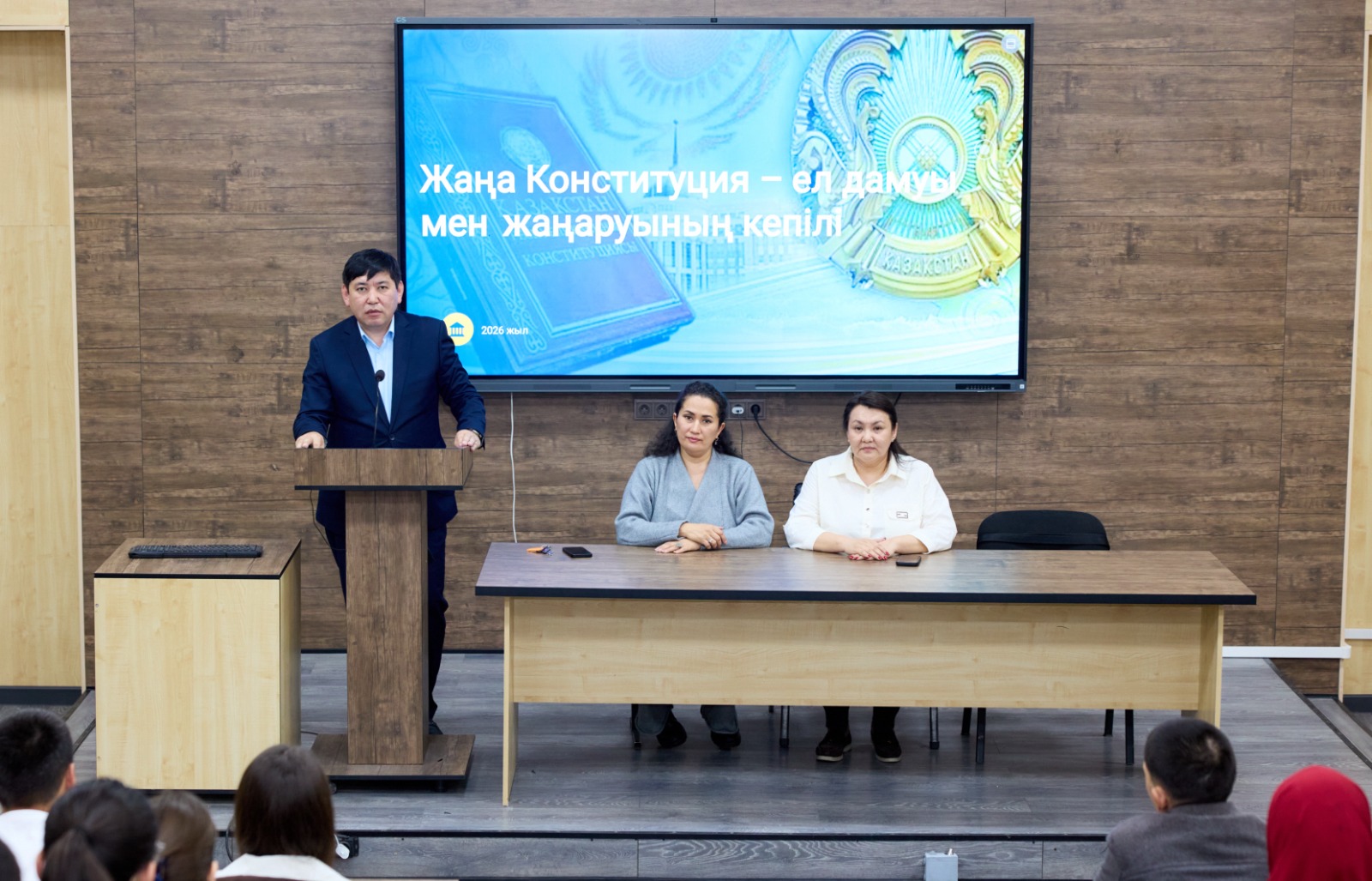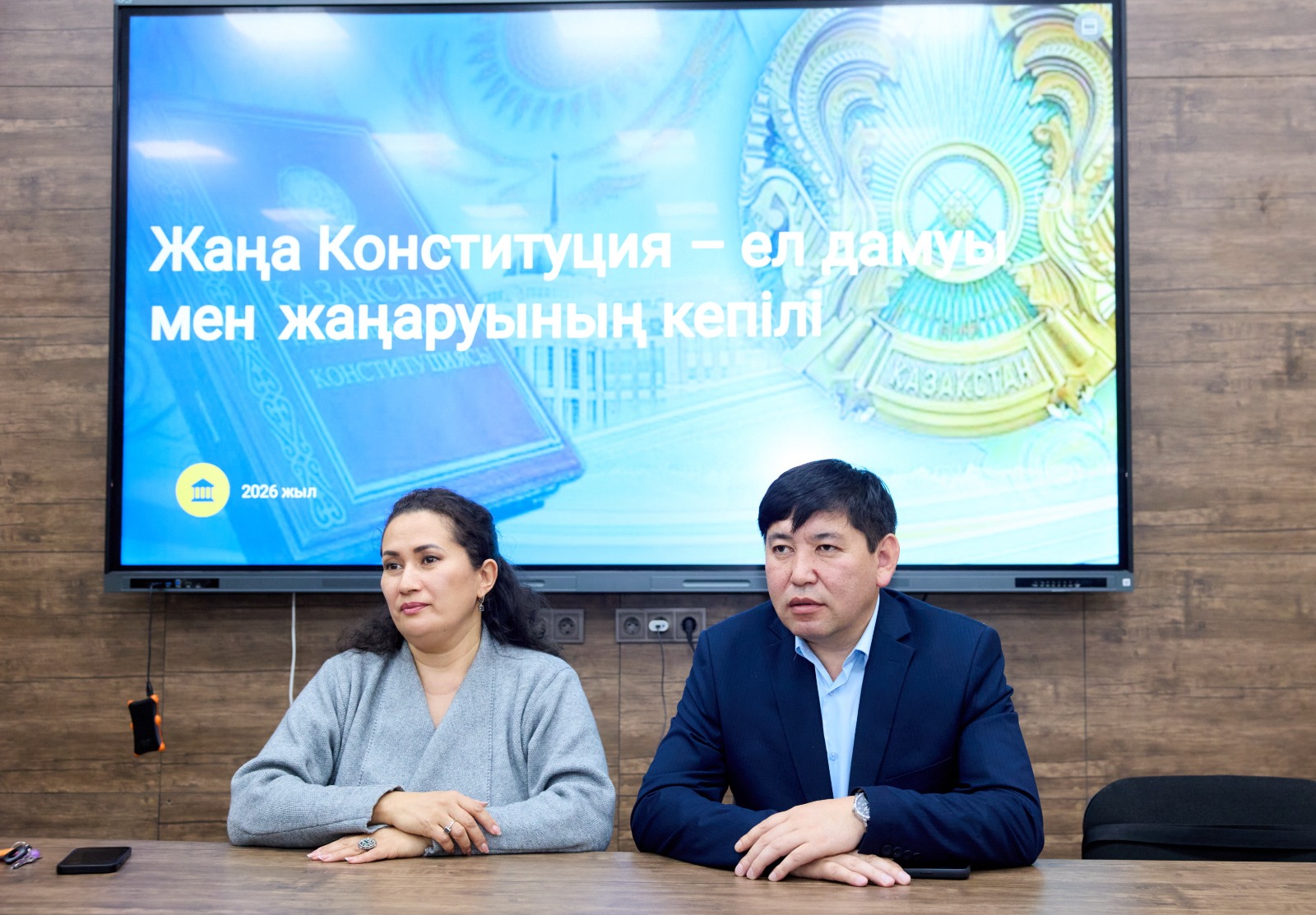Дәріс барысында қатысушылар елімізде жүргізіліп жатқан саяси жаңғыру үдерістерінің мәні мен бағыттары туралы кеңінен мәлімет алды. Атап айтқанда, 2026 жылғы 15 наурызға белгіленген бүкілхалықтық референдумға ұсынылған құжаттың негізгі тұжырымдамалары, билік тармақтарының өзара іс-қимылы, азаматтардың құқықтық мәртебесі мен жауапкершілігі жан-жақты түсіндірілді.