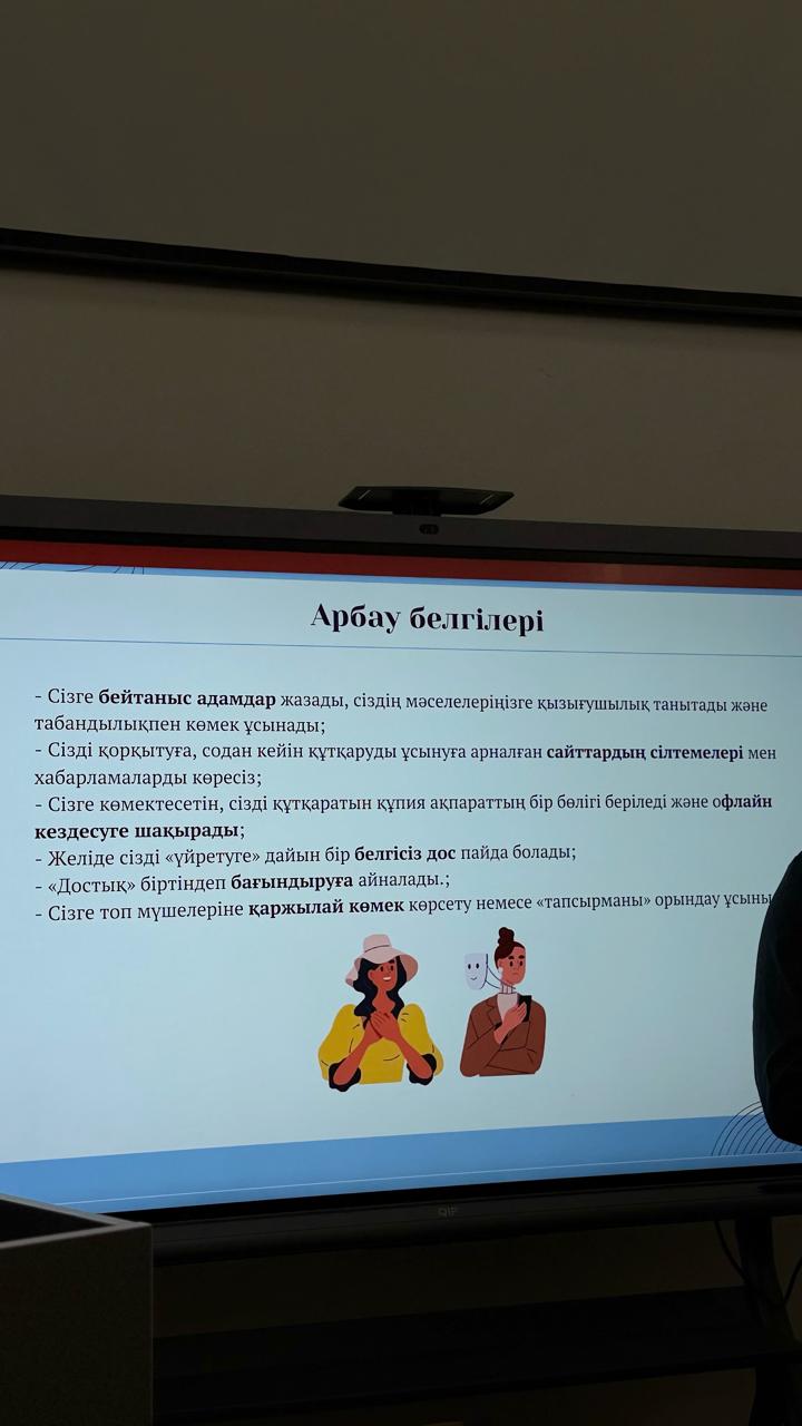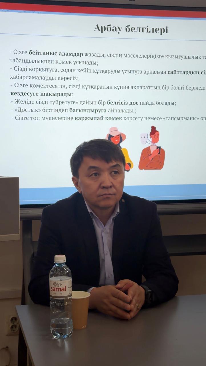 Кездесу ашық диалог форматында өтіп, студенттер өздерін толғандырған сұрақтарды еш тосқауылсыз қоя алды. Талқылау барысында экстремистік идеологияның жастар арасына енуінің алдын алу, онлайн-кеңістіктегі деструктивті мазмұнды тану және дұрыс азаматтық ұстаным қалыптастыру мәселелері ерекше назар аударды.