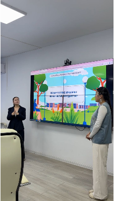 На мероприятии присутствовали к.п.н. ассоциированный профессор кафедры "Профессиональное обучение" Г.Н.Скабаева и ассоциированный профессор кафедры "Водные ресурсы и мелиорация", PhD К.Жанымхан. Занятие прошло очень интересно.