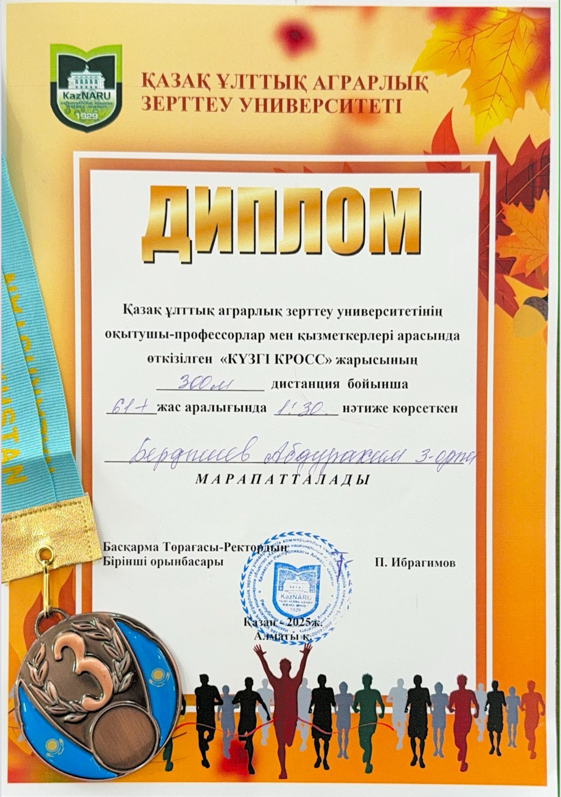 4 октября 2025 года на стадионе Казахского национального аграрного исследовательского университета состоялся традиционный забег «Осенний кросс» среди профессорско-преподавательского состава и сотрудников. Мероприятие было организовано кафедрой «Физическое воспитание и спорт» при поддержке Профсоюзной организации.