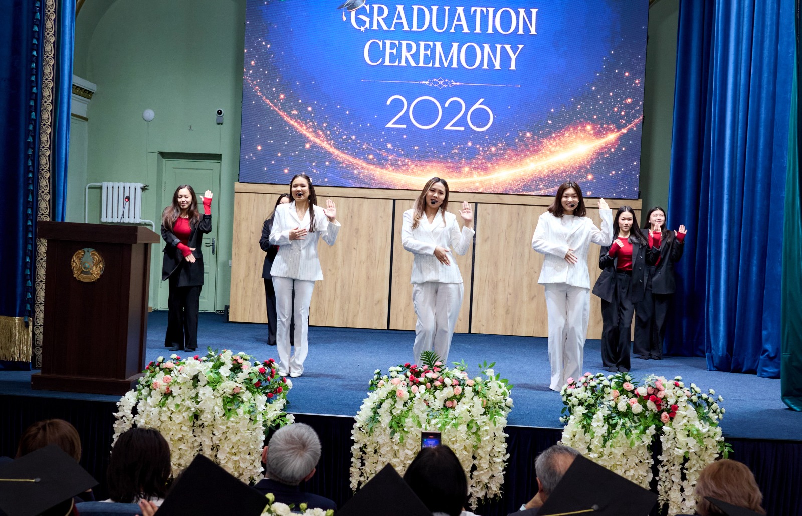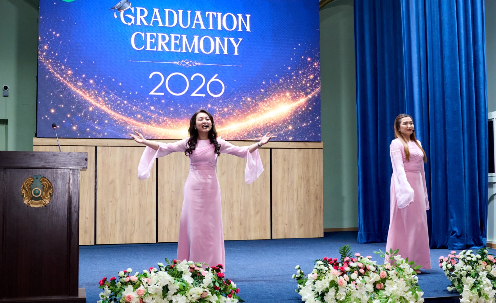 В завершение мероприятия студенты университета представили праздничную концертную программу, поздравив новоиспечённых магистров яркими выступлениями и создав торжественную атмосферу.
