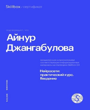 Джангабулова А.А. Эпидемиологические характеристики и финансовые потери при аспергиллёзе птиц в домашних хозяйствах Алматинской области Республики Казахстан // Journal Frontiers in Veterinary Science. ISSN: 2297-1769. Том: 10. Статья (Open Access), 2023. EID: 2-s2.0-85158995246.