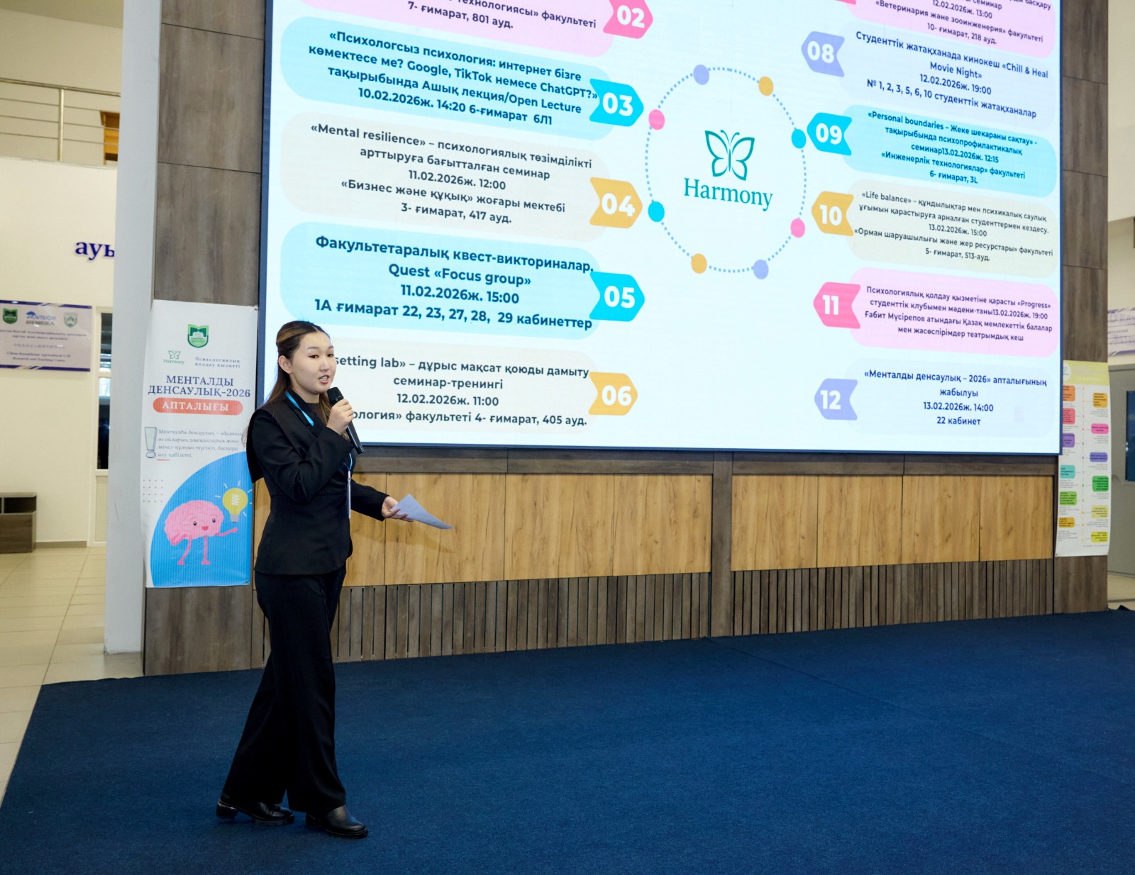 On February 9, 2026, KazNARU hosted the opening ceremony of the Mental Health 2026 week, organized by the Harmony University Psychological Support Service. The event is aimed at strengthening the psychological well-being of students and staff, increasing emotional stability and forming a healthy lifestyle. Since this event is also related to the content of the information campaign "QURMET", the personal boundaries of a person and the impact of mutual support on mental health were considered.