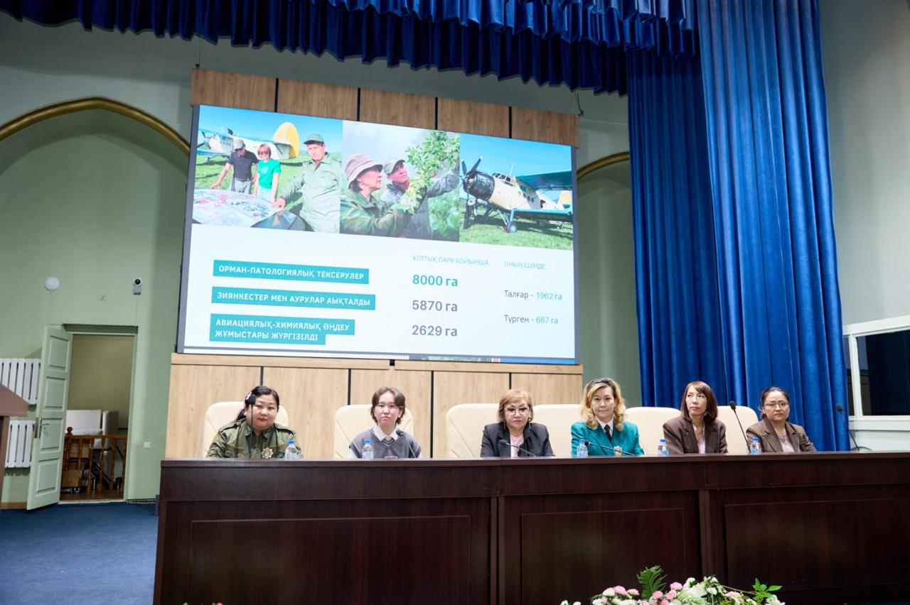 On April 7, 2026, a seminar "Biodiversity of Ile- Alatau" was held at the Faculty of Forestry and Land Resources as part of the decade dedicated to the Day of Science. This seminar was attended by Director of the Department of Science of KazNARU A. Sultanov, Dean of the Faculty D. Sarsekova, Head of the Department of Forest Resources, Hunting and Aquaculture A. Kopabaeva, a number of specialists from the Ile-Atau SNNP, headed by the Head of the Department of Research and Mountain Biodiversity Ile-Alatau S. Userbaeva. The event was organized by Indira Maysupova, Head of the Department of Landscape Design and Greening.