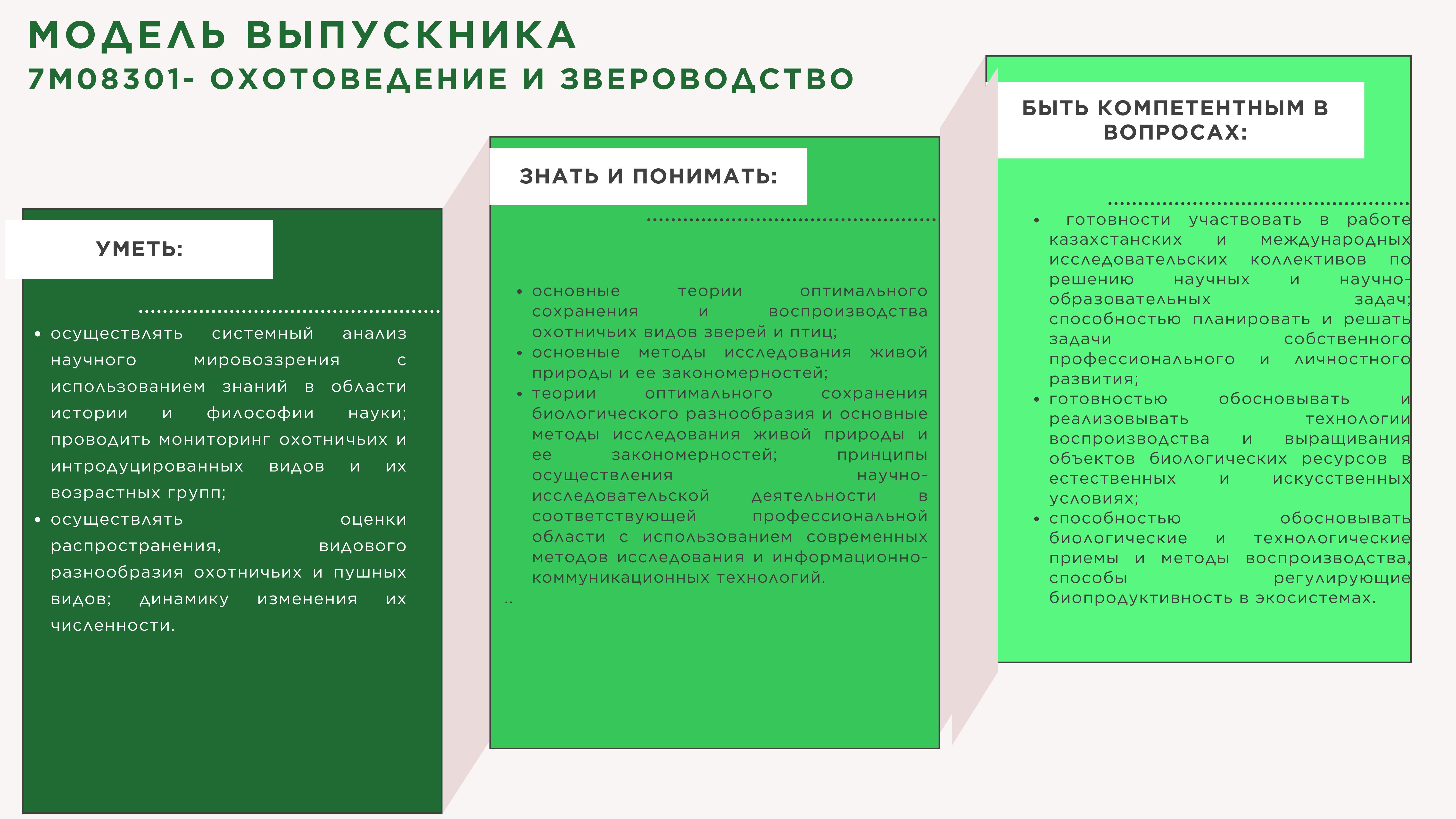Магистры направления подготовки 7М08301 – «Охотоведение и звероводство» могут выполнять следующие виды профессиональной деятельности: