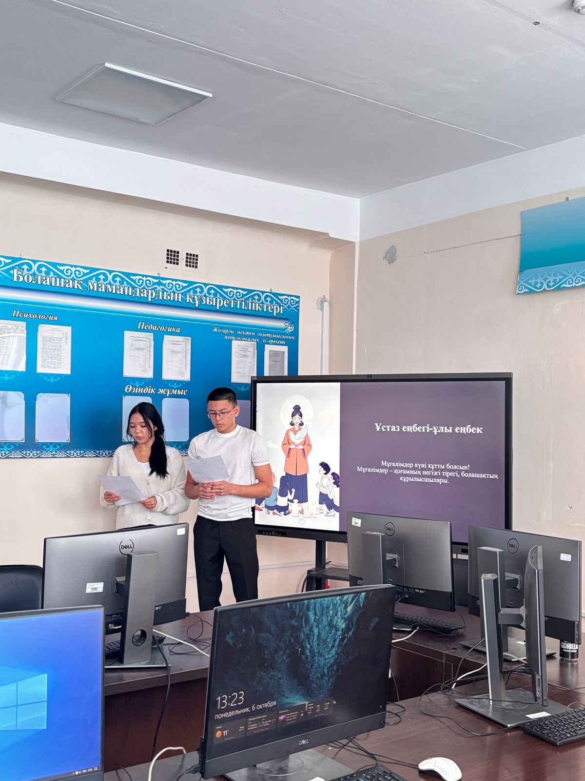 2025 жылдың 5 қазан күні IT-технологиялар кафедрасы, ЖИ 25-13к кураторлық тобы «Ұстаз еңбегі – ұлы еңбек» атты мерекелік кеш ұйымдастырды. Іс-шара ардақты ұстаздарға арналған жүрекжарды тілектер мен әсем өлең жолдарынан бастау алды.