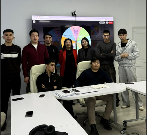 Білім алушылар ерекше қызығушылықпен «Жылы орындық» атты интерактивті ойынға қатысты. Аталған ойын ашық пікір алмасуға, бір-бірін қолдауға және топтағы ынтымақтастықты нығайтуға бағытталған. Қатысушылар бір-бірінің жағымды қасиеттерін атап, шынайы кері байланыс беруді үйренді.