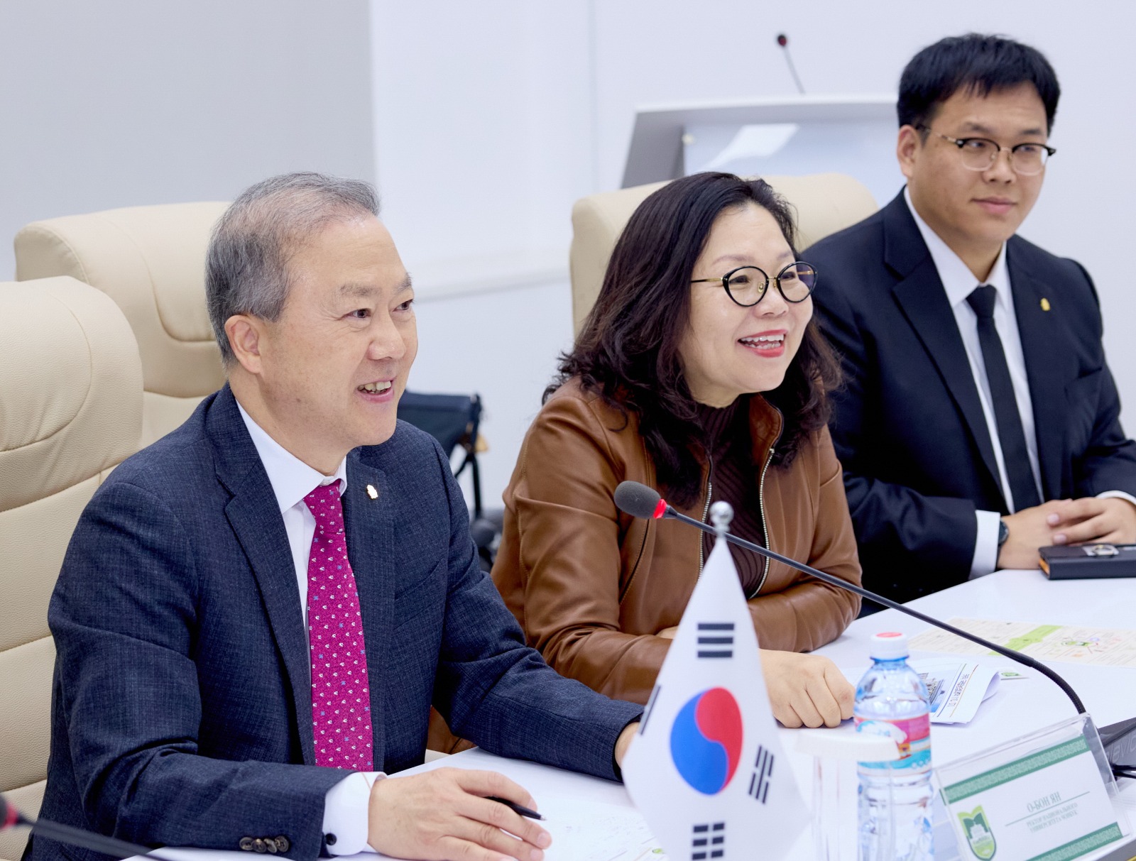 Делегацияны Чонбук ұлттық университетінің президенті О-Бон Ян мырза бастап келді. Өз сөзінде ол екі елдің де, екі университеттің де болашаққа деген айқын көзқарасы мен мақсаттарының ұқсас екенін, сондай-ақ бірлесе жұмыс істеуге дайын екенін атап өтті.