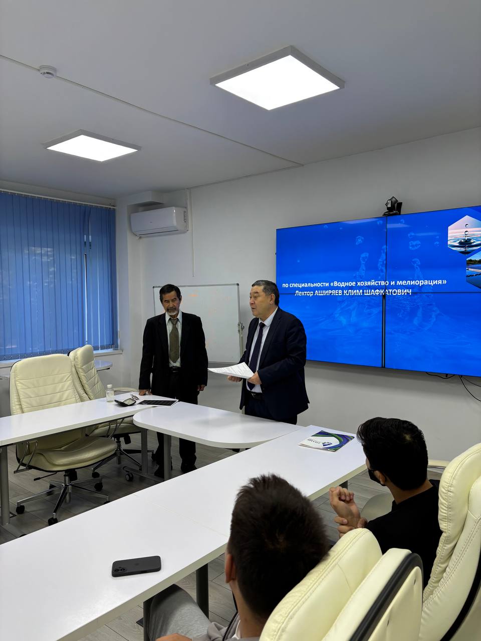 2025 жылдың 2 қазанында ҚазҰАЗУ КеАҚ және «ТИАШМИИ» ҰЗУ филиалының ұйымдастыруымен Ресей Академиясының ғылым және білім саласының еңбек сіңірген қайраткері, «Сумен қамтамасыз ету және кәріз жүйесі» бағытының техника ғылымдарының кандидаты Аширяев Клим Шафкатовичтің «Су ресурстары және IT технологиясы» факультетінің 1 курс студенттерімен «Су шаруашылығы және мелиорация» білім беру бағдарламасына кіріспе атты дөңгелек стөлі өтті.