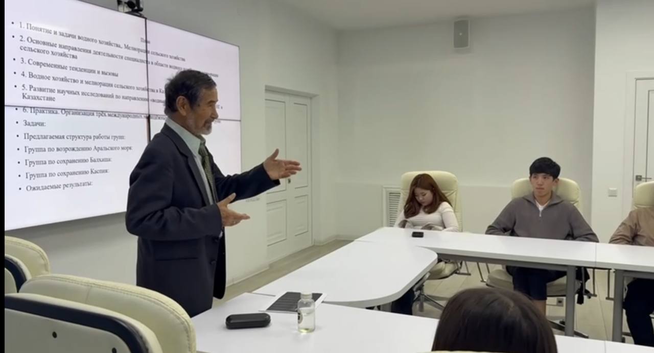 Жоғары оқу орнына жаңа қадам басқан студенттерге таңдаған мамандықтарының елімізде су ресурстарын ұтымды пайдалану, қорғау және қалпына келтірумен, ауыл шаруашылығы алқаптарының табиғи жағдайларын жақсартып, олардың құнарлылығымен өнімділігін арттыруға бағытталған шаралар кешені ретінде таптырмас сала екеніне тәжірибелік мысалдарын келтіріп өтті.
