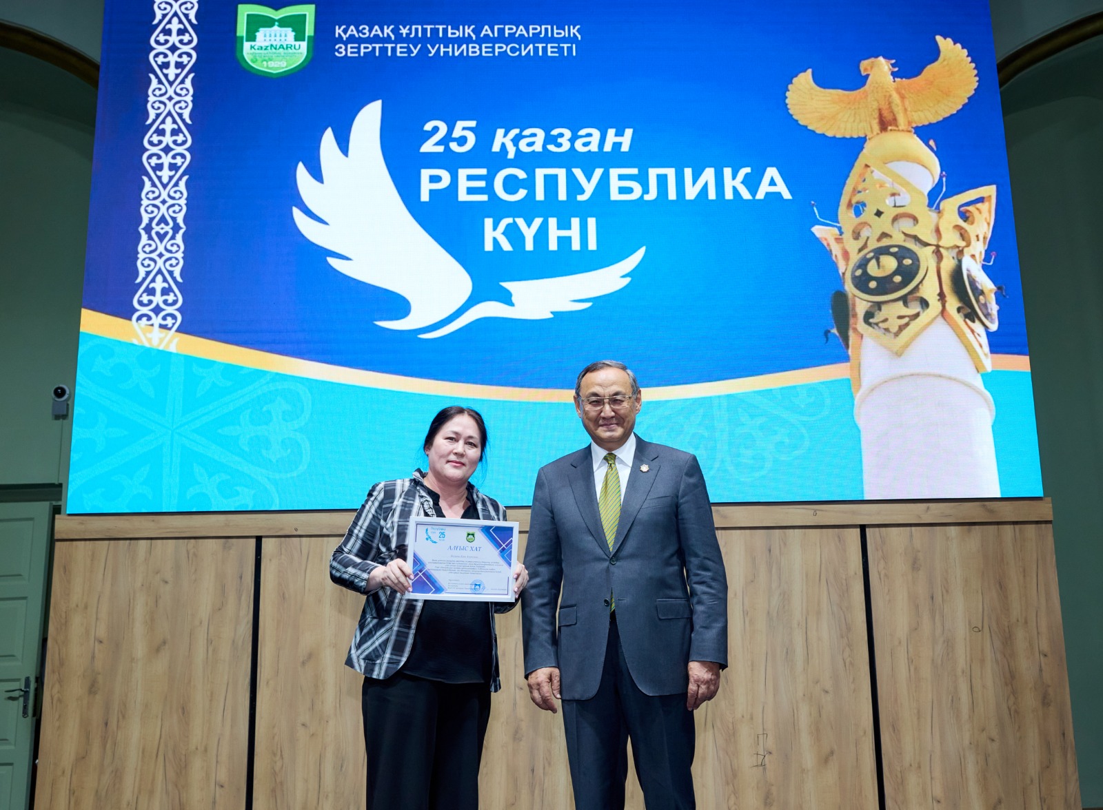 2025 жылы 23 қазан Қазақ ұлттық аграрлық зерттеу университетінде Республика күніне арналған салтанатты іс-шара өтті. Мерекелік жиынға білім ордасының профессор-оқытушылар құрамы мен қызметкерлері, студент жастар қатысты.