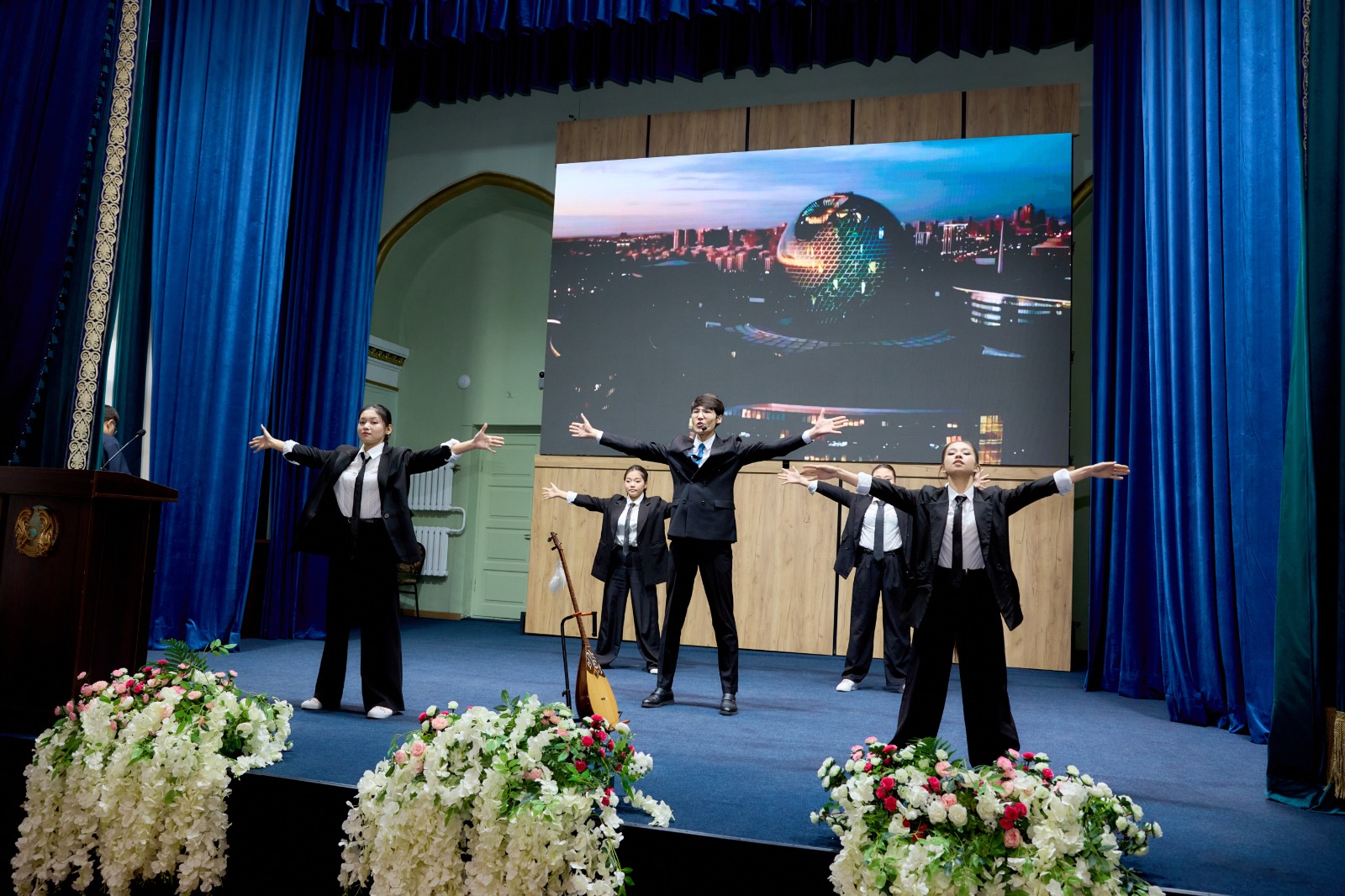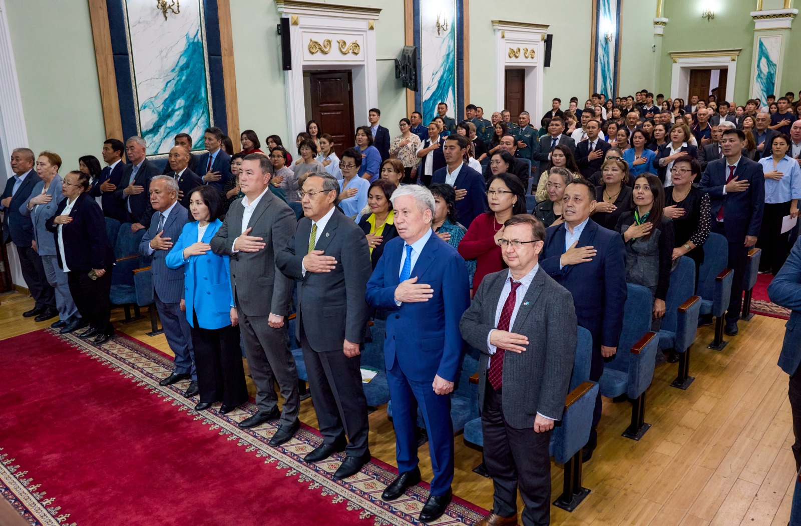 25 қазан – Республика күніне арналған іс-шара универсиететтің Басқарма Төрағасы-Ректоры, Қазақстан Республикасының Президенті жанындағы Ұлттық Ғылым Академиясының Президенті, академик Ақылбек Қажығұлұлының құттықтау сөзімен басталды.