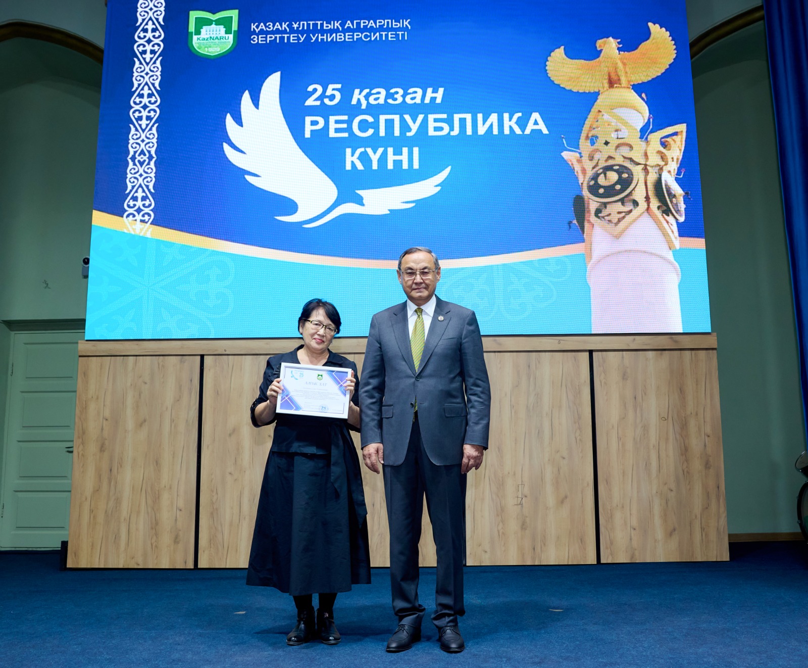 Мерекелік жиында университеттің дамуына сүбелі үлес қосқан бірқатар профессор-оқытушылар құрамы мен қызметкерлер ҚР Ауыл шаруашылығы министрлігі мен «Ұлттық аграрлық ғылыми-білім беру орталығы» коммерциялық емес акционерлік қоғамының марапаттарына ие болды. Оларға «Аграрлық білімге, ғылымға және өндіріске қосқан үлесі үшін» және «Айрықша еңбегі үшін» төсбелгілері, сондай-ақ «Құрмет грамоталары» мен арнайы «Алғыс хаттар» табысталды.