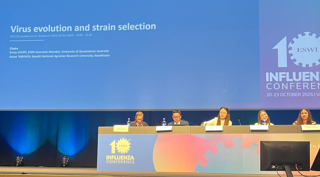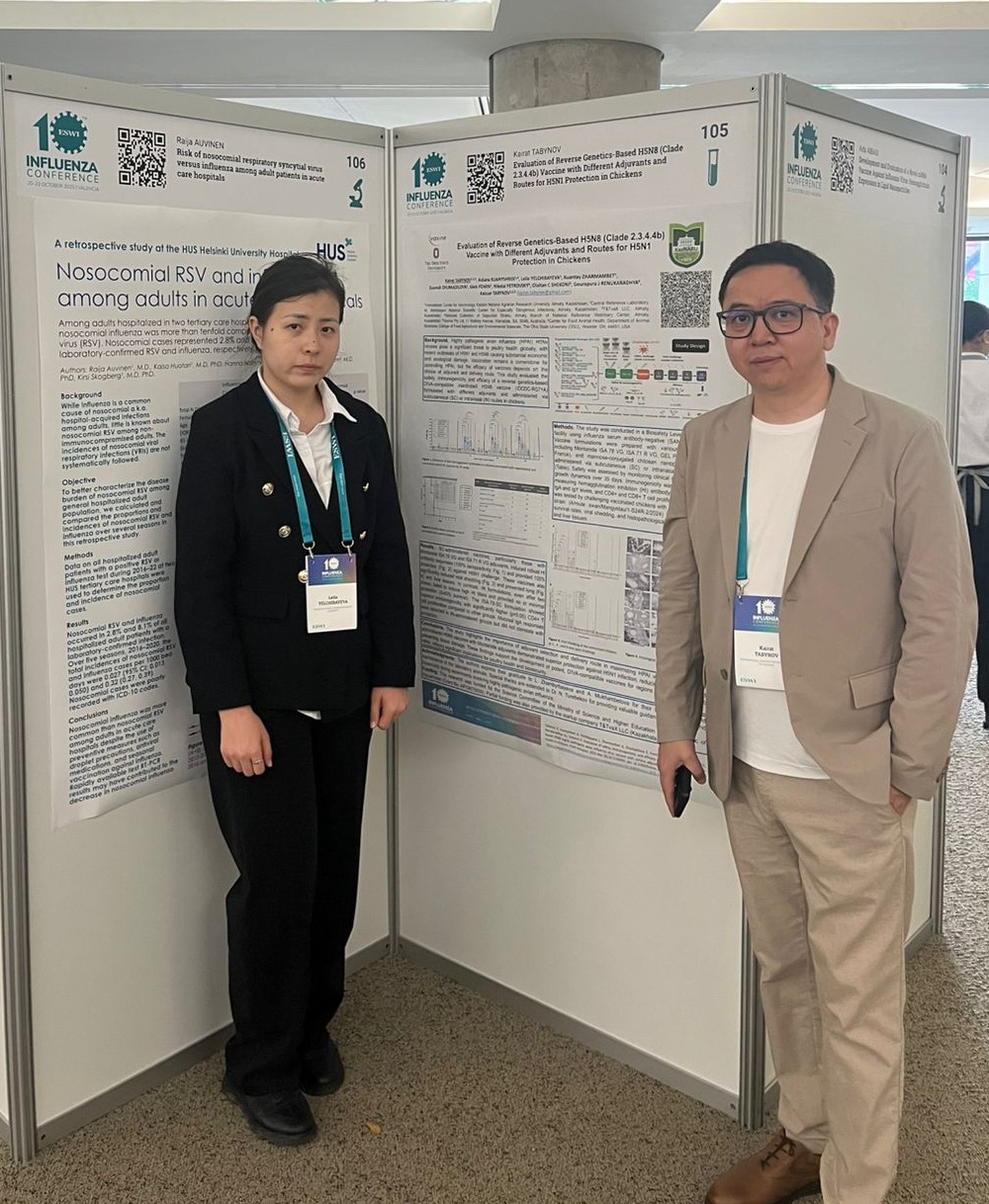 Конференция барысында қазақстандық ғалымдар AP19675939 «Жоғары патогенді құс тұмауына қарсы интраназальды нановакцина әзірлеу (2023–2025 жж.)» жобасының соңғы нәтижелерін таныстырды. Жоба Қазақстан Республикасының Ғылым және жоғары білім министрлігі тарапынан қаржыландырылған. Нәтижелер постерлік баяндама түрінде ұсынылды. Жобаның ғылыми жетекшісі – биология ғылымдарының докторы, профессор Қайсар Табынов.