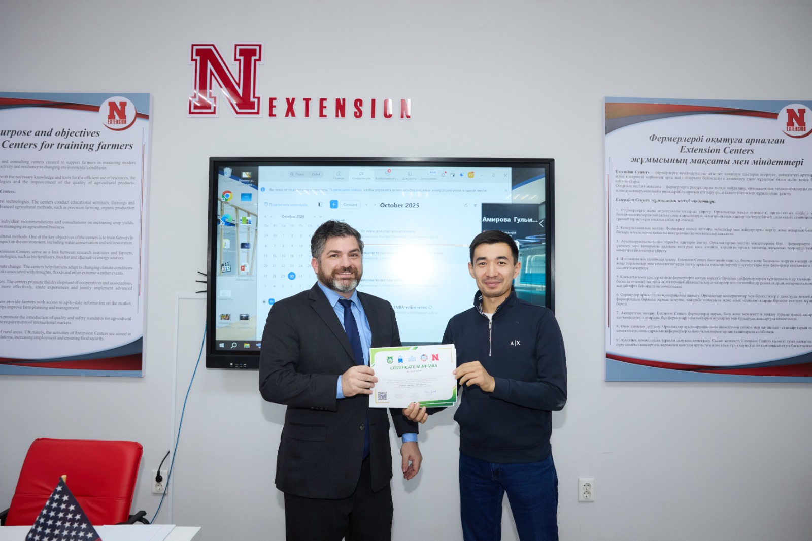 2025 жылдың 30 қазанында Қазақ ұлттық аграрлық зерттеу университетінің (KazNARU) ғылыми білім беру платформасында Небраска–Линкольн университетінің (University of Nebraska-Lincoln, UNL) профессоры Эндрю Зимброф (Andrew Zimbroff) стратегиялық менеджмент тақырыбында қорытынды дәрісін өткізді.