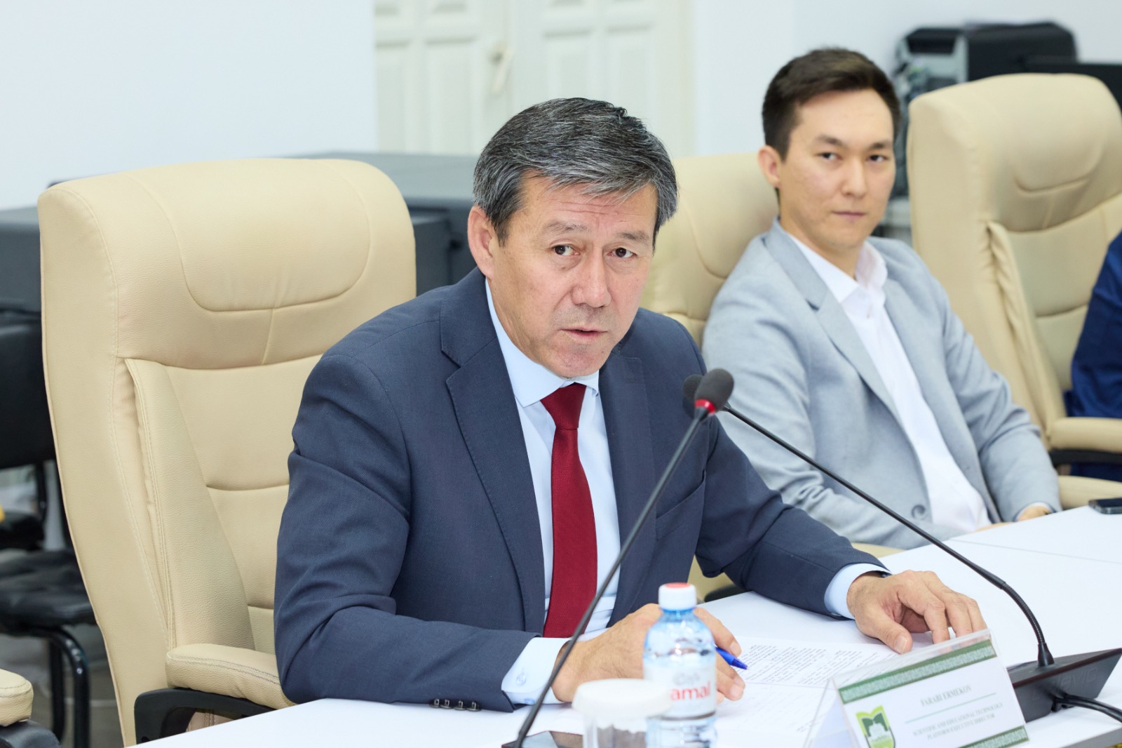 KazNARU Ғылыми-Технологиялық Платформасының Атқарушы Директоры Фараби Ермеков сөз алып, «Ақылды ауыл шаруашылығы орталығының» қызметі бойынша атқарылған жұмыстар мен қол жеткізілген нәтижелер туралы толық есеп берді. Орталықтың негізгі қызмет бағыттарын, зерттеу инфрақұрылымын дамытуды және цифрлық технологияларды енгізуді бастау кезеңдерін сипаттай отырып, орталықтың алдағы даму стратегиясына тоқталды.