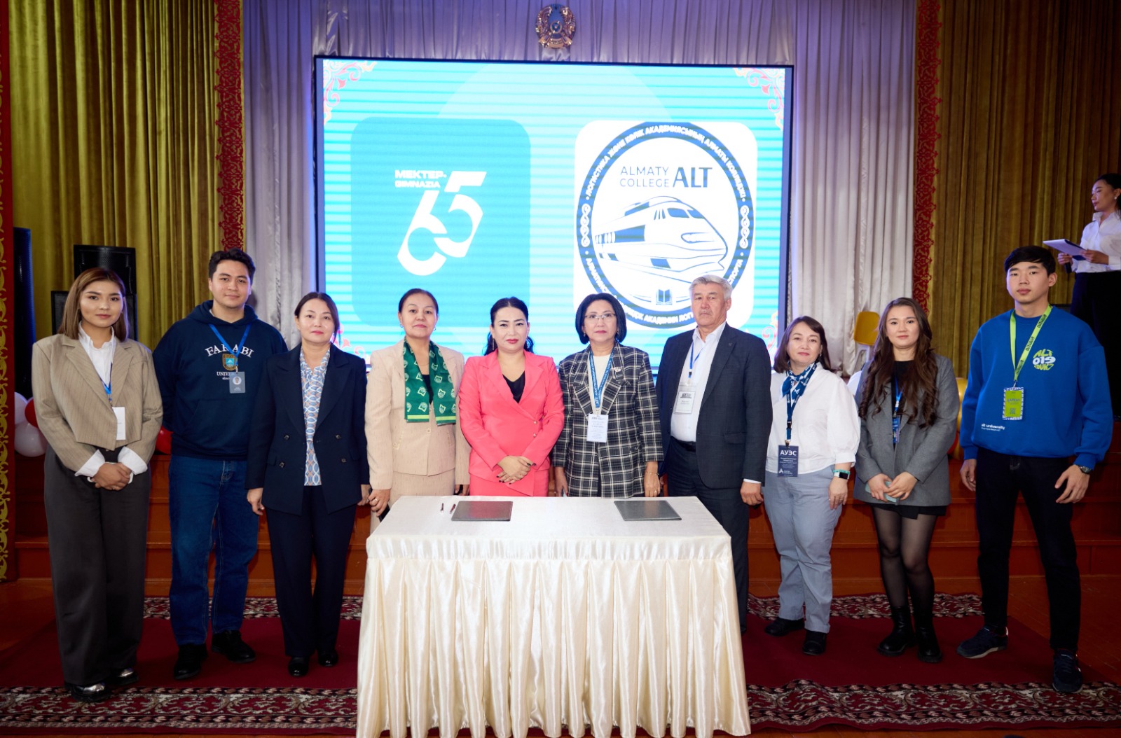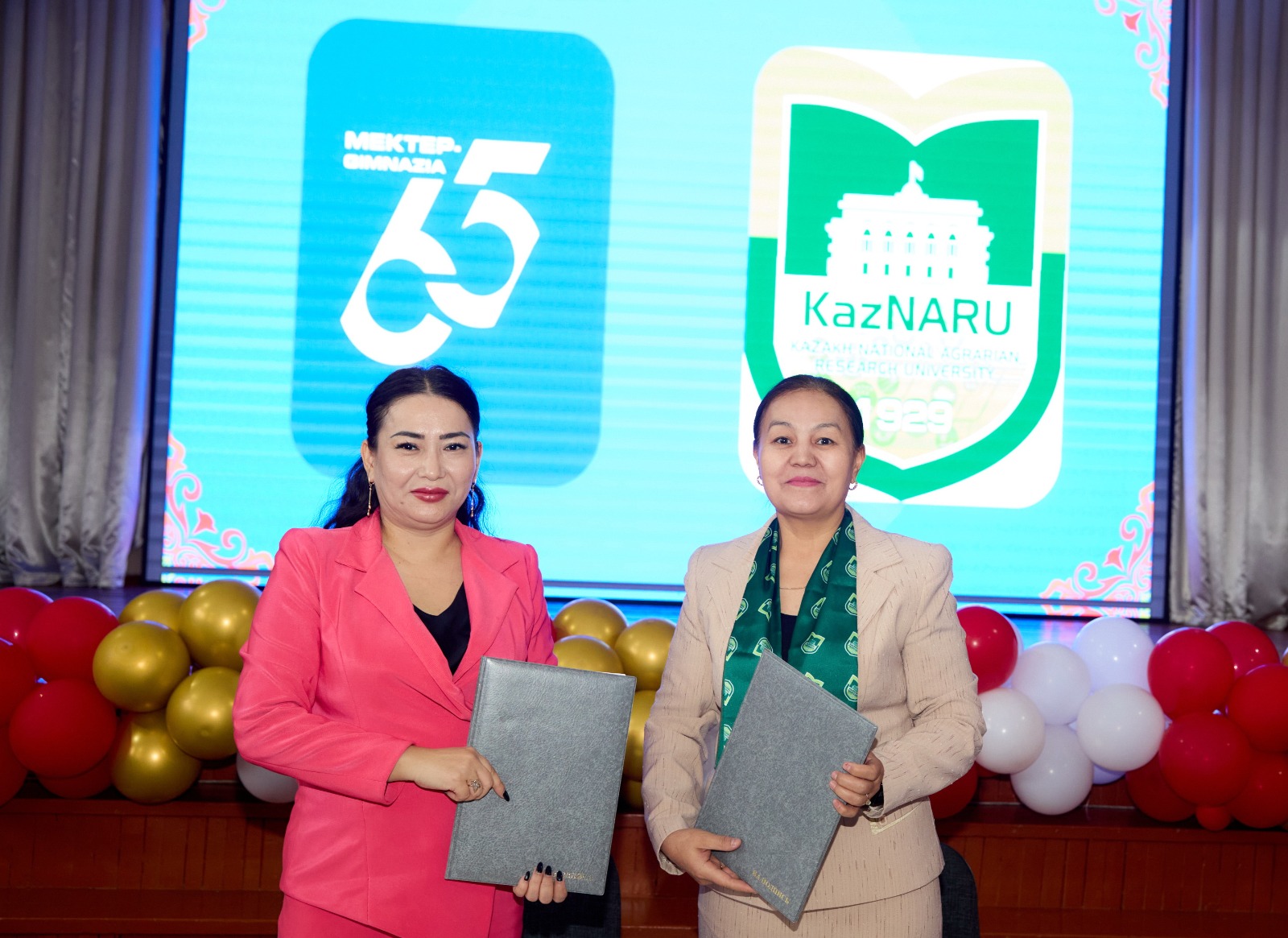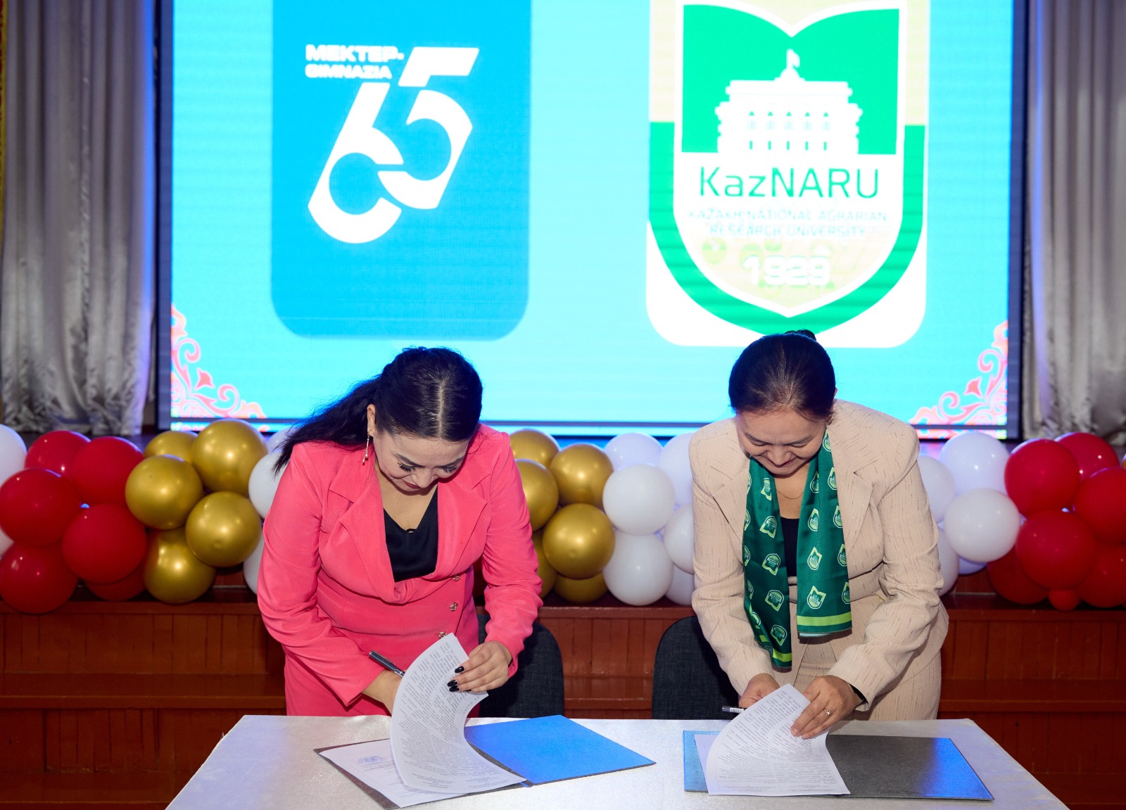 Іс-шара барысында KazNARU Қабылдау комиссиясының жетекші маманы Динара Нусиповна Бекбаева мен №65 мектеп-гимназиясының директоры Асель Батырхановна Абишева өзара ынтымақтастық туралы келісімге қол қойды. Бұл келісім екі тарап арасындағы білім беру бағытындағы байланыстарды нығайтып, бірлескен жобаларды жүзеге асыруға жол ашады.