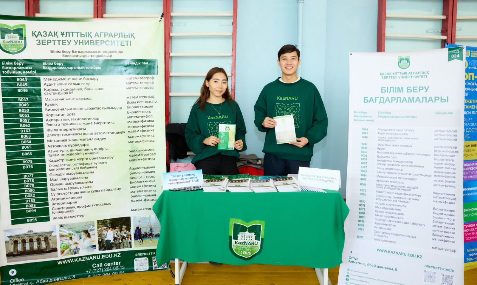 Білім беру саласындағы ұлттық көшбасшылардың бірі – Қазақ ұлттық аграрлық зерттеу университеті (KazNARU) де аталған іс-шараға белсенді түрде атсалысты. Университет өкілдері оқушыларға негізгі білім беру бағыттары мен мүмкіндіктері туралы жан-жақты ақпарат берді. Сонымен қатар, университеттің ғылыми-зерттеу институттары, дуалды оқыту мүмкіндіктері, халықаралық серіктестері, заманауи зертханалар мен тәжірибелік шаруашылық базалары туралы мәліметтер ұсынылды.
