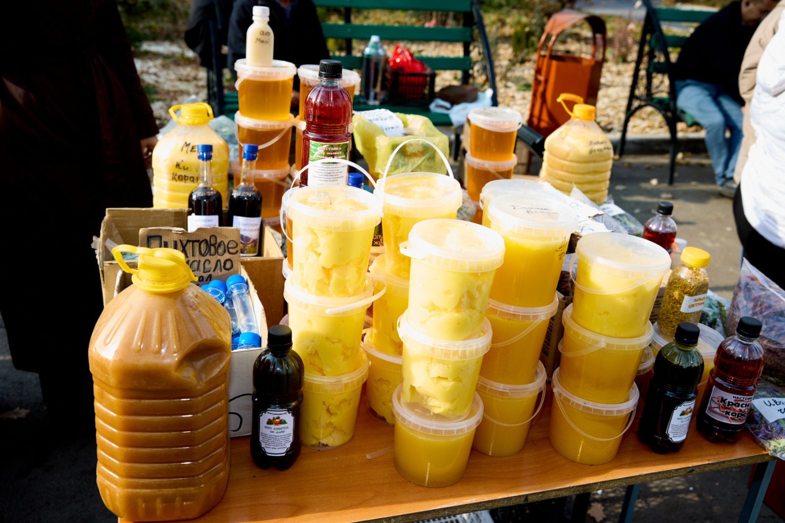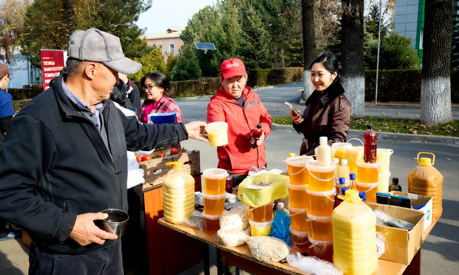 Жәрмеңке сөрелерінде түрлі табиғи әрі экологиялық таза өнімдер қойылды. Атап айтқанда, «Tengri Milk» компаниясы сиыр және ешкі сүтінен дайындалған өнімдерін, Еңбекшіқазақ ауданы, Жанашар ауылынан келген кәсіпкер сиыр және жылқы етін ұсынды. Сонымен қатар, «Fresh Fish KZ» тұтынушыларға балғын балық түрлерін, «Shakh Eco Food» компаниясы қызанақтар мен нан-тоқаш өнімдерін, түрлі кәсіпкерлер табиғи бал және басқа да өнімдерін алып келіп, жәрмеңкені қыздырды.