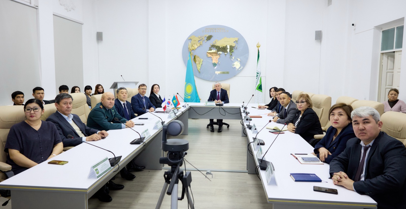 Кездесу барысында Басқарма Төрағасы-Ректордың Бірінші орынбасары, в.ғ.д., профессор Ибрагимов Пірімқұл Шолпанқұлұлы университеттің даму бағыттары мен жастарға арналған жаңа мүмкіндіктер туралы баяндама жасады.