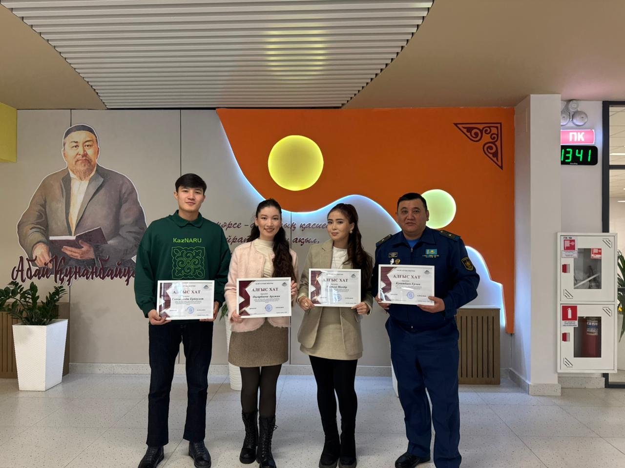 KazNARU атынан көрмеге Әскери кафедраның аға оқытушысы Ерлан Куватбаев, университеттің Баспасөз қызметінің өкілі Аружан Оңғарбаева, сондай-ақ белсенді студенттер Мөлдір Умітәлі мен Ердәулет Сатыбалды қатысты.